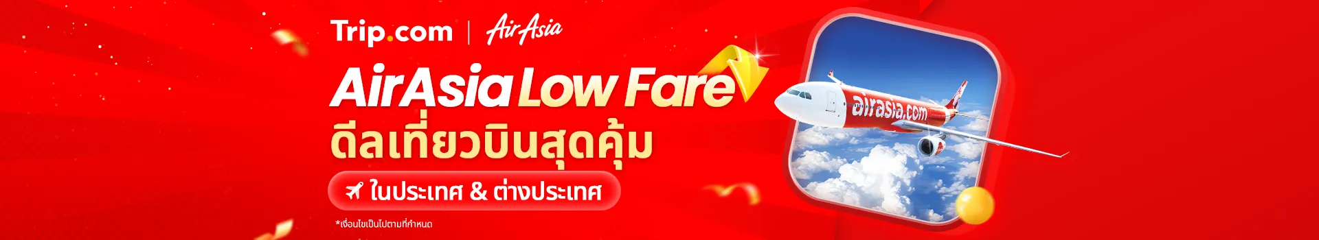โปรโมชั่น AirAsia Hot Deal นี้จัดขึ้นโดย Trip.com Travel Singapore Pte. Ltd. (“Trip.com”, “โปรโมชั่น” หรือ “บริษัท”)