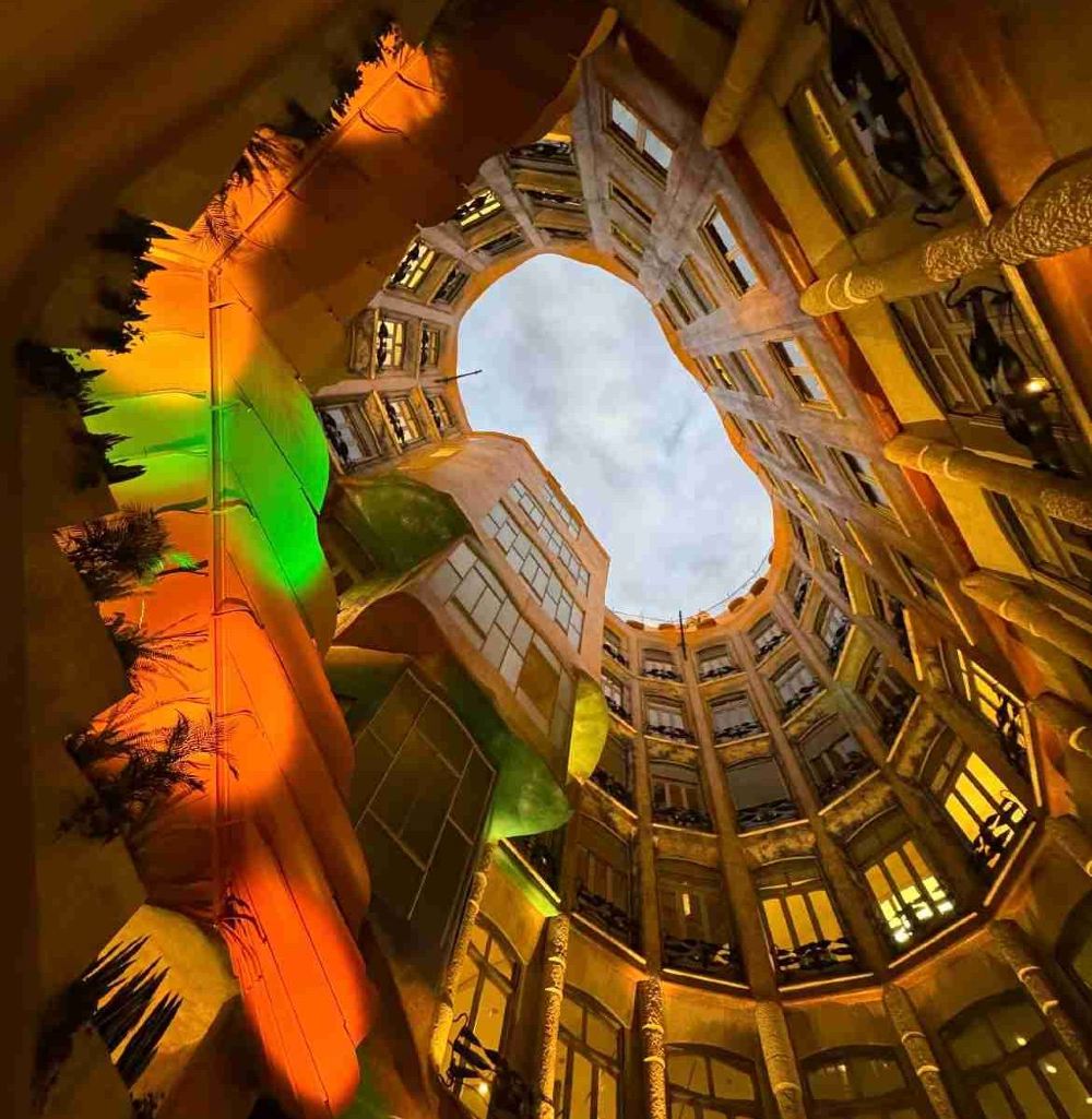 ▲ ซากราดาฟามีเลีย: ภายในเต็มไปด้วยองค์ประกอบทางธรรมชาติและพลังชีวิตที่เต็มเปี่ยม การขึ้นไปบนหอคอยยังสามารถชมทิวทัศน์ของเมืองบาร์เซโลนาได้อย่างสวยงาม เมื่อมองขึ้นไปยังยอดแหลมของแลนด์มาร์กที่มีชื่อเสียงที่ตั้งตระหง่านอยู่ในเมืองหลวงของแคว้นคาตาโลเนีย แสงอาทิตย์ที่ส่องผ่านกระจกสีจะสะท้อนให้เห็นรุ้งบนพื้น ทุกซอกทุกมุมทั้งภายในและภายนอกล้วนน่าทึ่งราวกับอยู่ในความฝัน ผลงานชิ้นเอกของสถาปนิกอัจฉริยะเกาดีที่ยังไม่แล้วเสร็จแต่ได้รับการขึ้นทะเบียนเป็นมรดกโลกแล้ว