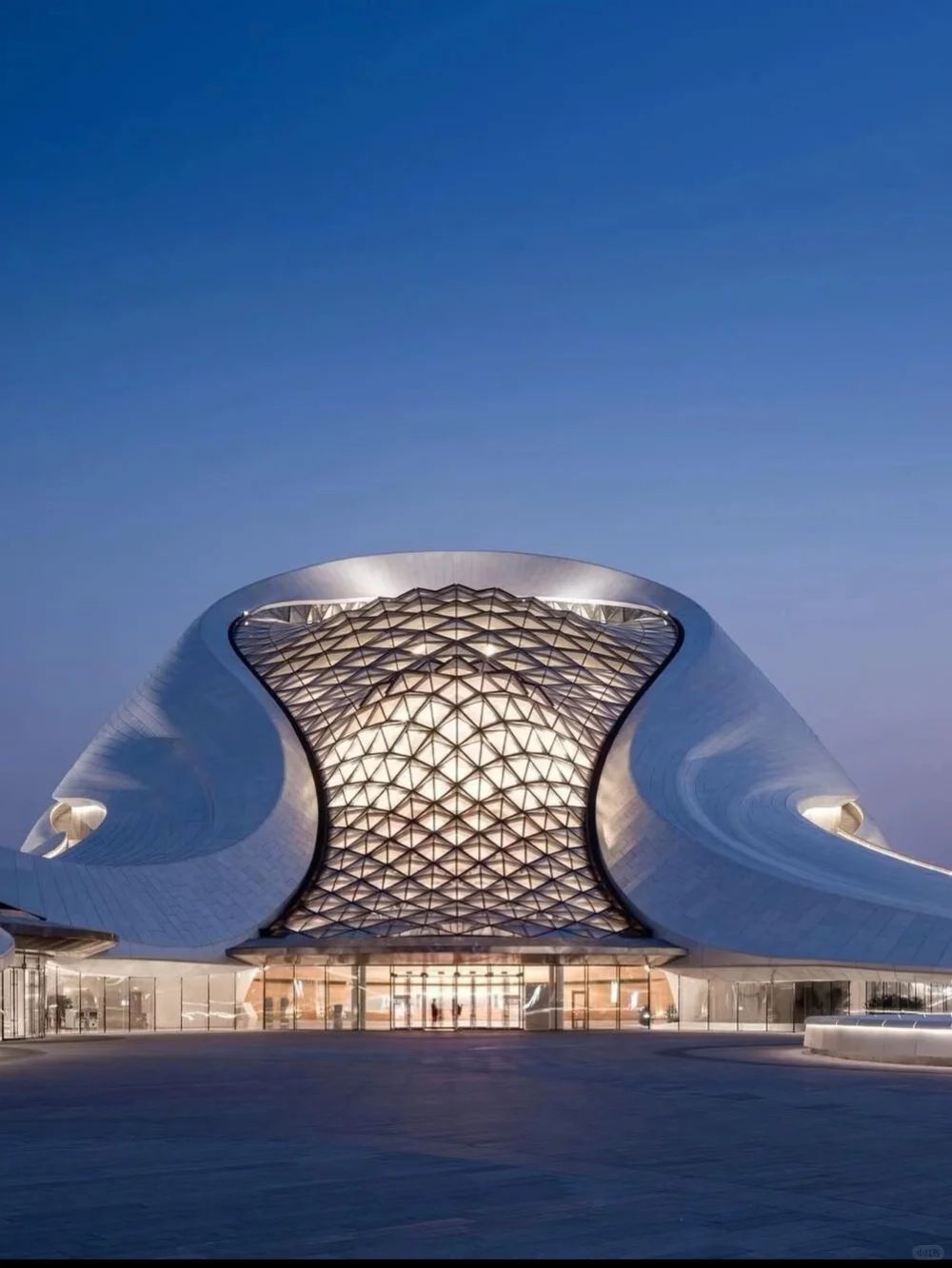 ▲ โรงอุปรากรฮาร์บินเปล่งประกายใต้แสงสีน้ำเงินยามค่ำ คืน เส้นโค้งอันเป็นประติมากรรมกลมกลืนกับท้องฟ้ายามหนาวอย่างลงตัว โดมโครงตาข่ายที่สว่างไสวและพื้นผิวที่เรียบลื่นแสดงถึงความสวยงามอันล้ำยุคของอาคารแห่งนี้ เป็นจุดที่โดดเด่นสำหรับการถ่ายภาพสถาปัตยกรรมและภาพมุมกว้าง