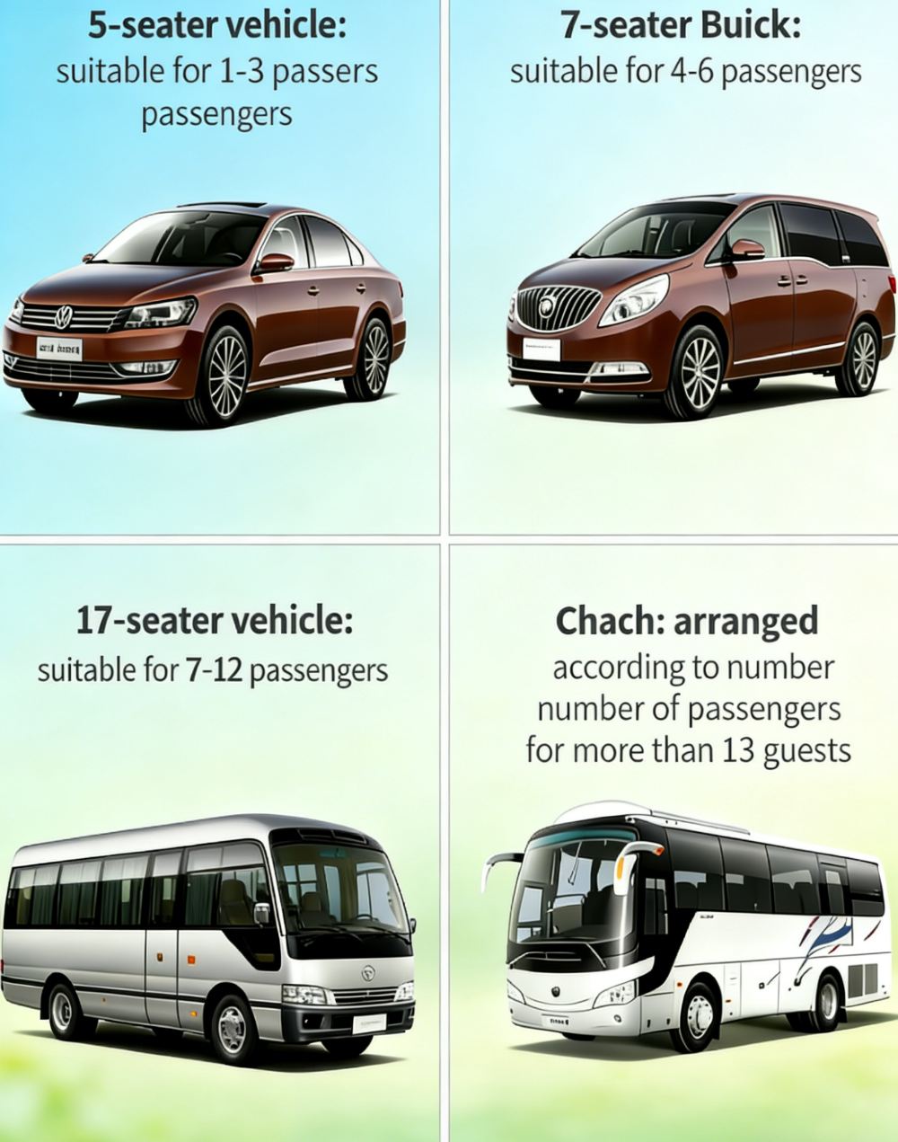 - 13+ ผู้โดยสาร: จัดรถบัสแบบกำหนดเอง (เราจะเลือกประเภทรถบัสที่เหมาะสมตามจำนวนคนที่แน่นอน)