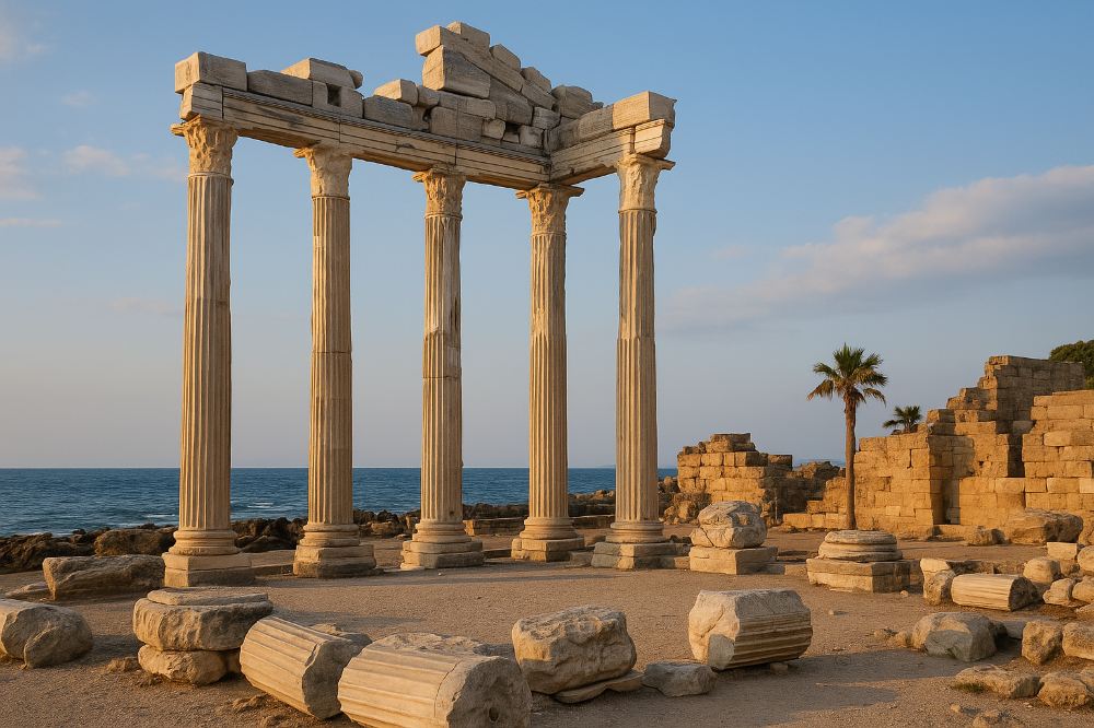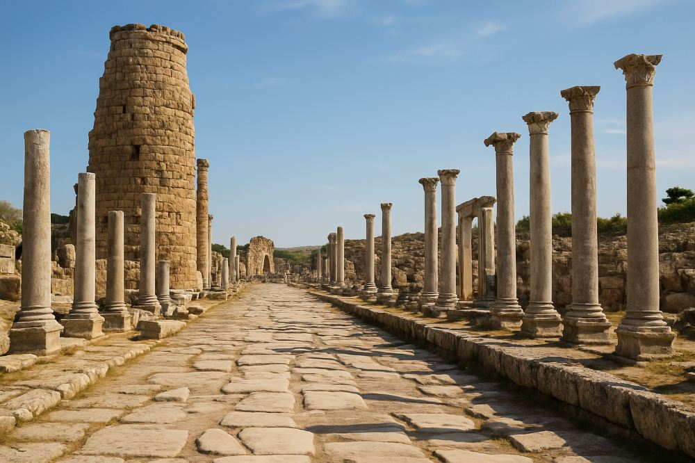 ▲ เพอร์เจเป็นซากเมืองโรมันโบราณที่โดดเด่นในภูมิภาคเมดิเตอร์เรเนียน ภายในเมืองคุณจะได้เห็นถนนเสาเรียง ประตูเมือง ห้องอาบน้ำสาธารณะ และพื้นที่สาธารณะ เส้นทางเดินกระจายตัวอยู่ระหว่างกลุ่มอาคารหลัก ทำให้คุณสามารถเดินชมเสาหิน รากฐาน และโครงสร้างถนนได้อย่างช้าๆ พื้นที่นี้มีภูมิประเทศเรียบ การเยี่ยมชมจึงสะดวกสบาย และเป็นจุดเริ่มต้นที่ดีในการทำความเข้าใจรูปแบบเมืองโบราณของอันตัลยา