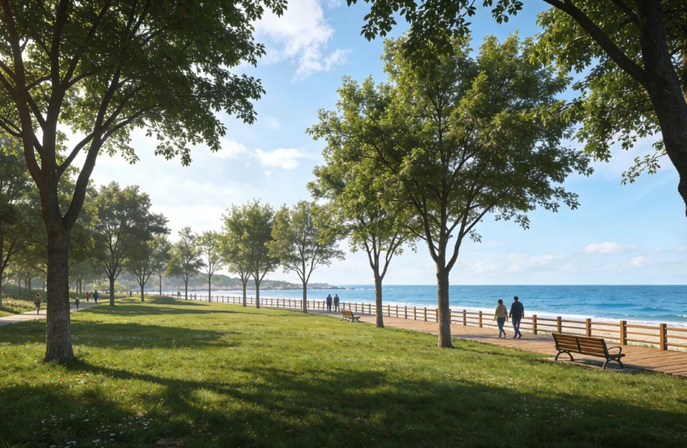 ▲ สวนสาธารณะริมทะเล มีทิวทัศน์ภูเขาและวิวทะเล