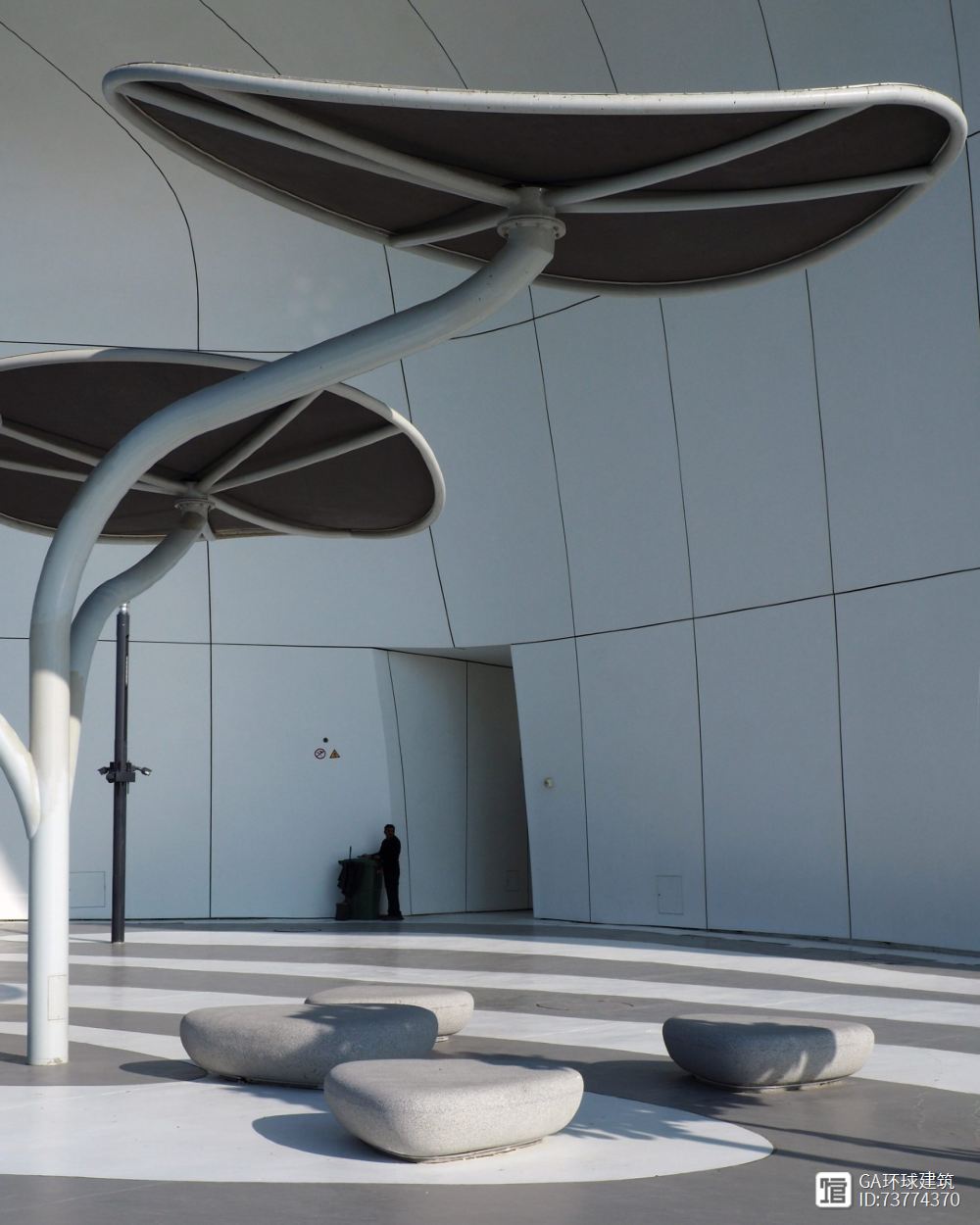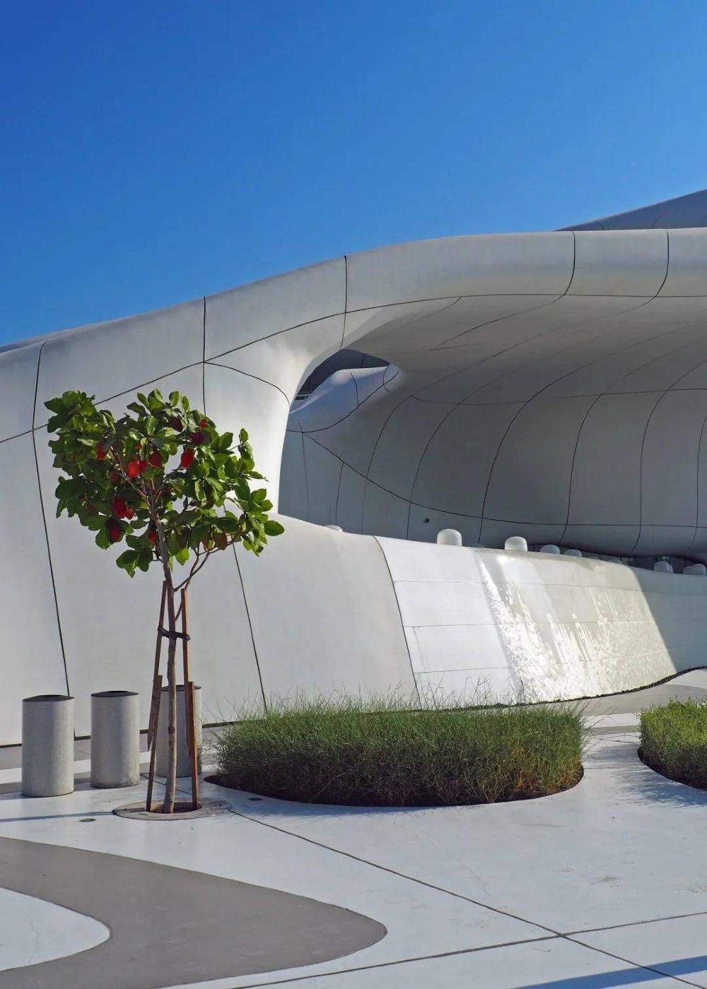 ▲ เรือศิลปะใต้โดมแสงฝน: โดมเงินกรุแสงลอยตัวเหนือผืนทะเล แสงอาทิตย์สาดส่องเหมือนสายฝนกระทบอาคารสีขาวบริสุทธิ์ สร้างภาพมหัศจรรย์ของแสงนับหมื่นดวงที่เคลื่อนไหวไปตามคลื่น