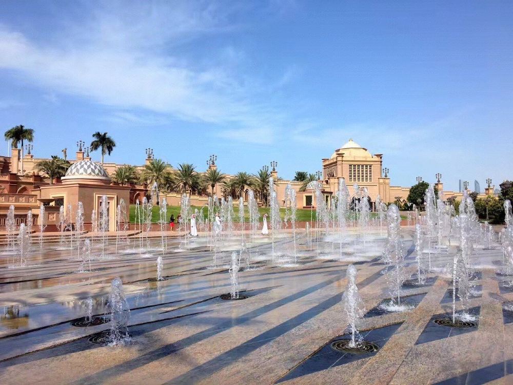 ▲ พระราชวังที่ประดับประดาด้วยสวนและทิวทัศน์ทะเล: ล้อมรอบด้วยสวนน้ำพุขนาดใหญ่และหาดส่วนตัว เมื่อมองจากทางเดินริมทะเล อาคารสีขาวบริสุทธิ์และสีทองดูหรูหราและสงบท่ามกลางสวนและสีน้ำเงินของอ่าวเปอร์เซีย