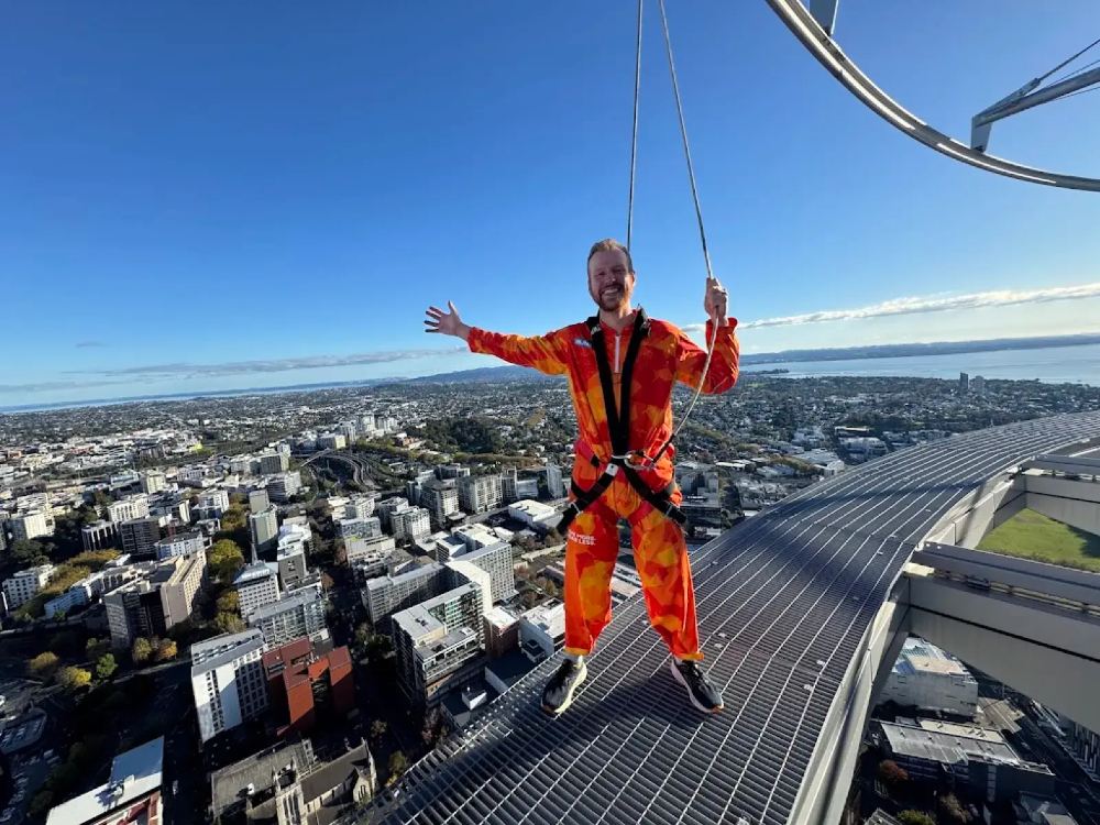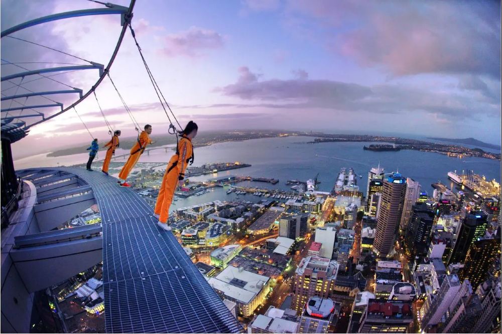 - เดินเล่นไปตามทางเดินแคบด้านนอกสกายทาวเวอร์