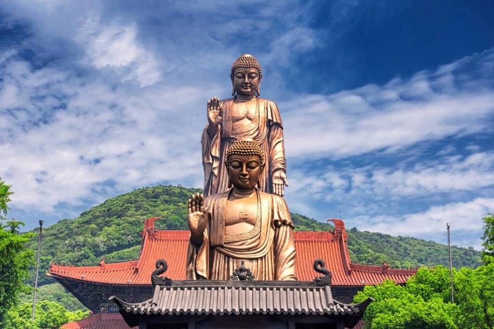 ชมความอลังการของพระพุทธรูปสัมฤทธิ์องค์ยืนสูง 88 เมตร ประดิษฐานอยู่เชิงเขาและหันหน้าสู่ทะเลสาบไท่หู สะท้อนแนวคิดอันยิ่งใหญ่ที่ว่า "ภูเขาคือพระพุทธเจ้า พระพุทธเจ้าคือภูเขา" แวะชมโถงศิลปะวังพราหมณ์เพื่อชมสมบัติทางสถาปัตยกรรม เช่น โดมจิตรกรรมฝาผนังแบบตุนหวังและเสาไม้แกะสลักตงหยาง ชมการแสดงประติมากรรมเคลื่อนไหวที่ลานสรงน้ำเก้ามังกร เพื่อสัมผัสการผสมผสานอันลงตัวระหว่างวัฒนธรรมพุทธกับศิลปะสมัยใหม่