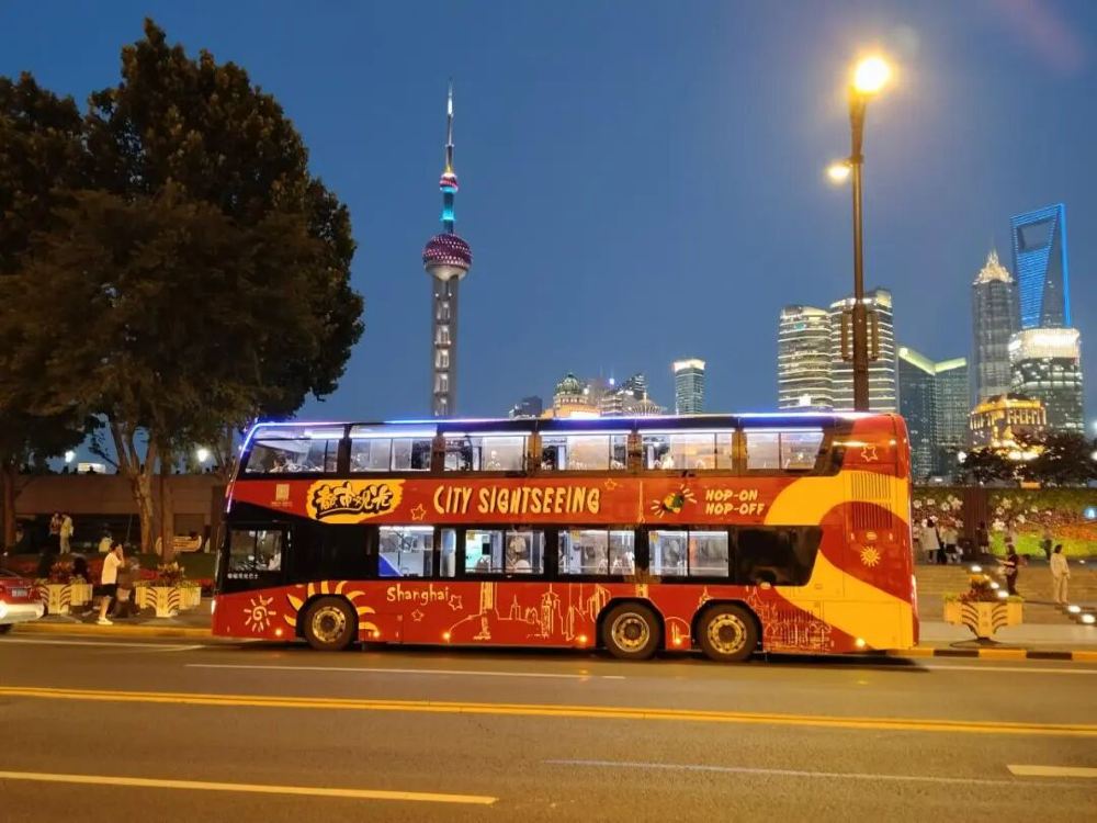 18:15 - 19:00 น. ขึ้นรถบัสสองชั้น City Sightseeing Bus เพื่อทัวร์รอบเมือง 45 นาที ชมสถานที่สำคัญต่างๆ รวมถึงเดอะบันด์และสวนอวี้หยวน