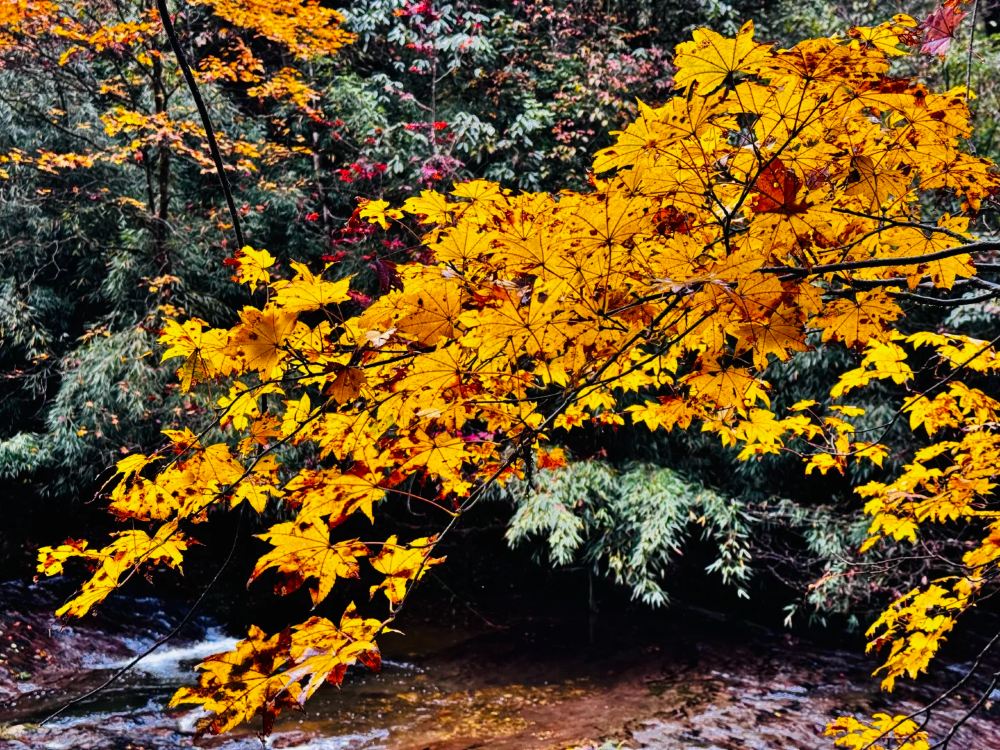 - ฤดูใบไม้ร่วงที่หุบเขาหลงชางกวนเต็มไปด้วยสีสัน ลมฤดูใบไม้ร่วงทำให้ป่าเขาที่เงียบสงบมีชีวิตชีวามากขึ้น