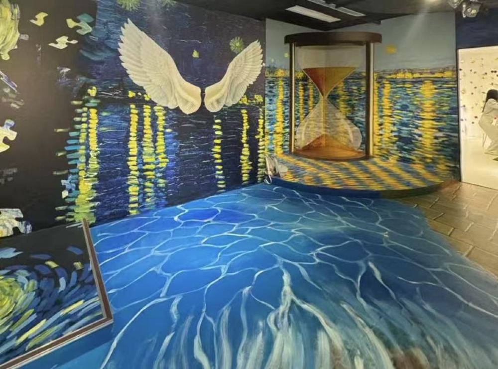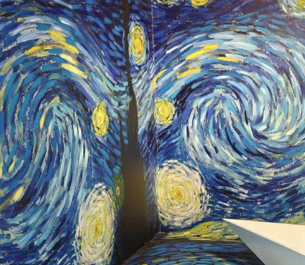 เทคโนโลยีคือ "ศิลปินที่มองไม่เห็น" ณ ที่แห่งนี้ แต่ไม่เคยบดบังความงดงามของภาพวาดเลยแม้แต่น้อย สถานที่แห่งนี้ใช้เทคนิคภาพลวงตาเชิงพื้นที่ การซ้อนทับของแสงและเงาแบบไดนามิก พร้อมด้วยระบบเสียงรอบทิศทาง ทำให้ความอ้างว้างของ "ฝูงกาบนทุ่งข้าวสาลี" และความสงบเงียบของ "ดอกไอริส" มีมิติที่ลึกซึ้งยิ่งขึ้น ในโซน "อุโมงค์ดวงดาว" ลูกปัดไฟนับไม่ถ้วนสลับกับกระจกเงา เมื่อมองขึ้นไปจะเห็น "ดวงดาว" เต็มท้องฟ้า เมื่อมองลงไปจะเห็นเงาสะท้อนในกระจก ทำให้แยกไม่ออกว่านี่คือความจริงหรือภาพลวงตา ถ่ายรูปมุมไหนก็สวยงามราวกับมีแสงนวลในตัว และในโซนประสบการณ์แบบอินเทอร์แอคทีฟ นักท่องเที่ยวสามารถโบกมือเพื่อ "จุดประกาย" ท้องฟ้าที่เต็มไปด้วยดวงดาวในภาพวาด หรือ "พูดคุย" กับแวนโก๊ะบนหน้าจอได้ การโต้ตอบแบบดื่มด่ำนี้ทำให้ศิลปะไม่ดูเข้าถึงยากอีกต่อไป แม้แต่เด็กๆ ก็สามารถเขย่งปลายเท้าและสัมผัสลายเส้นของปรมาจารย์ด้วยปลายนิ้วได้
