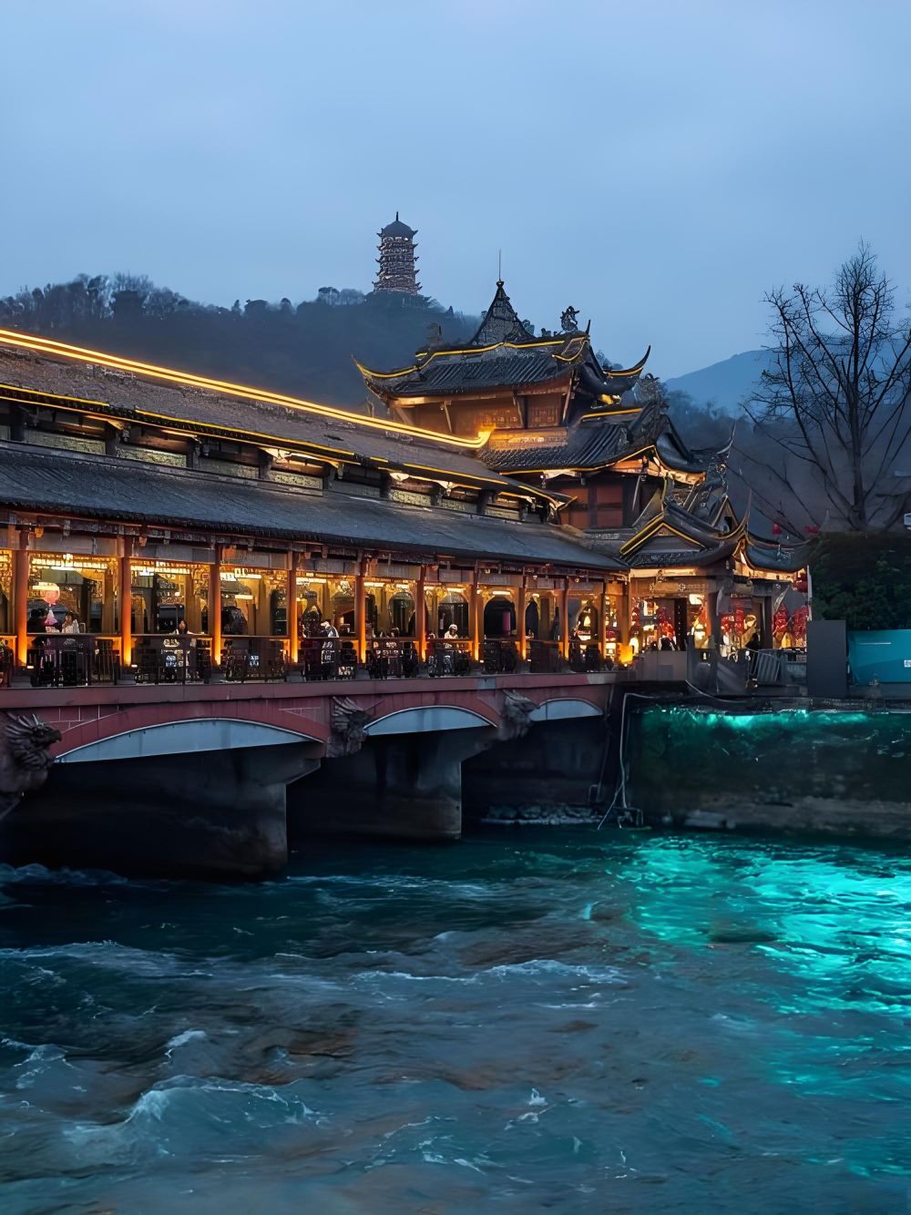▲ ตูเจียงเยี่ยน มีสมญานามว่า "มรดกโลก" และ "สิ่งมหัศจรรย์ด้านวิศวกรรมชลประทาน" รวมถึงยังมีทัศนียภาพยามค่ำคืนที่สวยงามอย่าง "น้ำตาสีฟ้า"