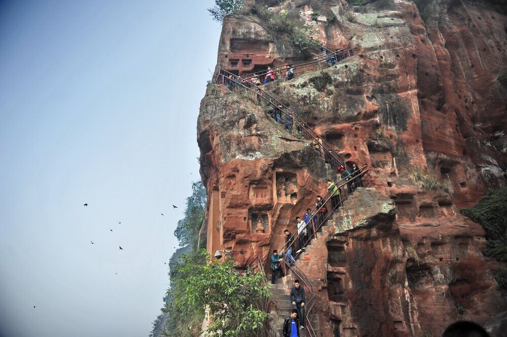 พระใหญ่เล่อซานตั้งตระหง่านอย่างสง่างามบริเวณจุดบรรจบของ แม่น้ำหมิน แม่น้ำชิงอี้ และแม่น้ำต้าตู ในเมืองเล่อซาน มณฑลเสฉวน ถูกสลักเข้าไปในเนินเขา และตั้งอยู่ใกล้กับแม่น้ำอย่างอันตราย การก่อสร้างเริ่มขึ้นใน สมัยราชวงศ์ถัง และใช้เวลา เก้าสิบปี จึงแล้วเสร็จ ด้วยความสูงทั้งหมด 71 เมตร นับเป็น พระพุทธรูปหินนั่งที่ใหญ่ที่สุดในโลก ความ ยิ่งใหญ่และฝีมืออันประณีต แสดงให้เห็นถึงภูมิปัญญาและความเฉลียวฉลาดของคนโบราณได้อย่างเต็มที่ ทำให้ผู้เยี่ยมชมต้องประทับใจ