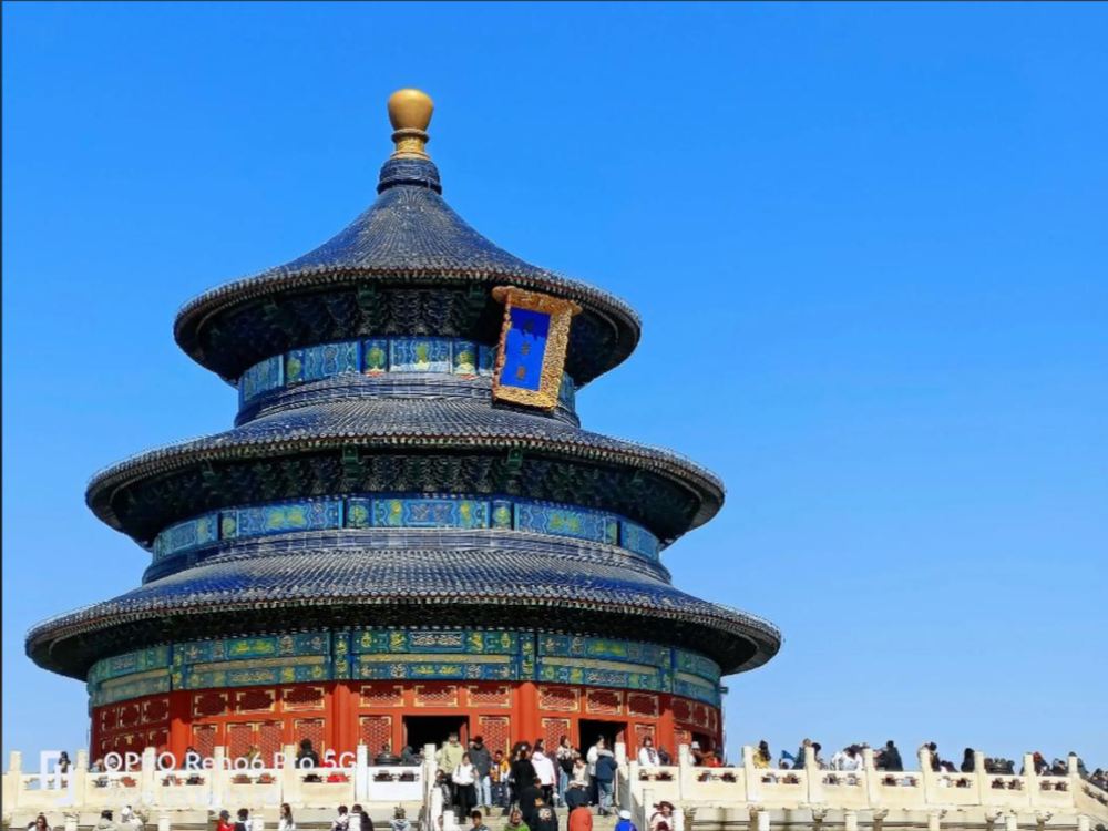 ▲ วิหารแห่งสวรรค์ (เทียนถาน) เป็นสถานที่ศักดิ์สิทธิ์ที่จักรพรรดิในราชวงศ์หมิงและชิงใช้ประกอบพิธีบวงสรวงฟ้าเพื่อขอพรให้พืชผลอุดมสมบูรณ์ ตั้งอยู่ที่เขตตงเฉิง ปักกิ่ง มีพื้นที่ 2.73 ล้านตารางเมตร สร้างขึ้นครั้งแรกในปีที่ 18 ของรัชสมัยหย่งเล่อแห่งราชวงศ์หมิง (ค.ศ. 1420) การออกแบบผังอาคารเป็นรูป "วงกลมทางเหนือ สี่เหลี่ยมทางใต้" สื่อถึงความเชื่อ "ฟ้ากลมดินเหลี่ยม" อาคารหลักประกอบด้วย หอสวดพร (ฉีเหนียนเตี้ยน), แท่นบูชาฟ้า (หวนชิวถาน) และสะพานเตี้ยนปี้ หอสวดพรเป็นศูนย์กลางของแท่นบูชาพรพืชผล แท่นบูชาฟ้าใช้เฉพาะในพิธีบวงสรวงฟ้าวันเหมายัน ส่วนสะพานเตี้ยนปี้เชื่อมต่อทั้งสองแท่น วิหารแห่งสวรรค์ได้รับการขึ้นทะเบียนเป็นมรดกโลกในปี 1998 และเป็นกลุ่มอาคารโบราณสำหรับพิธีบวงสรวงฟ้าที่ยังคงเหลืออยู่ การออกแบบทางเสียงเช่นกำแพงก้องเสียง (หุยอินปี้) และหินสามเสียง (ซานอินสือ) แสดงให้เห็นถึงความชำนาญด้านสถาปัตยกรรมโบราณ