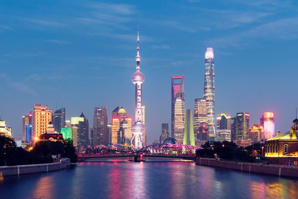 ▲ หอไข่มุกตะวันออกในยามค่ำคืนส่องสว่างด้วยแสงสีอันตระการตา ร่วมกับกลุ่มตึกระฟ้าในลู่เจียจุ่ย สร้างภาพเมืองเซี่ยงไฮ้ที่ตระการตา