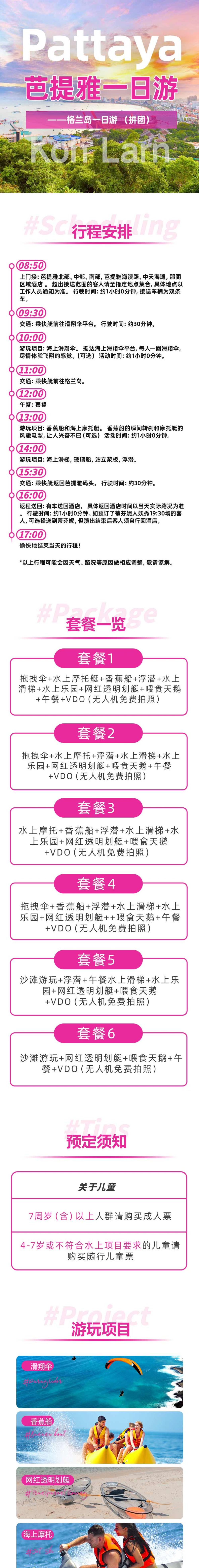 [บริการรับส่งถึงที่พัก + อาหารกลางวัน + ค่าเรือยอร์ช + กิจกรรมทางทะเลครบวงจร (พาราเซลลิ่ง + เรือเจ็ทสกี + บานาน่าโบ๊ท + ดำน้ำตื้น + สไลเดอร์น้ำ + สวนน้ำ + เรือคายัคใสยอดนิยม + ให้อาหารหงส์ + อาหารกลางวัน + ถ่ายภาพฟรีด้วยโดรน VDO)]
