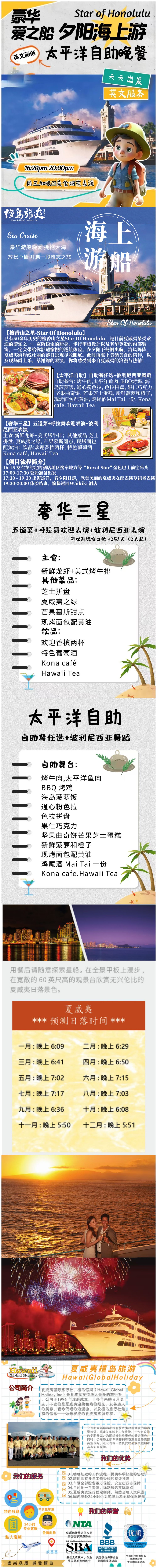 ภายใต้ทัศนียภาพอันงดงามของพระอาทิตย์ตกดินที่ตระการตา ร่วมสนุกไปกับลูกเรือในการแสดงแจ๊สและฮูลาฮูลาอันไพเราะ สนุกสนานอย่างเต็มที่