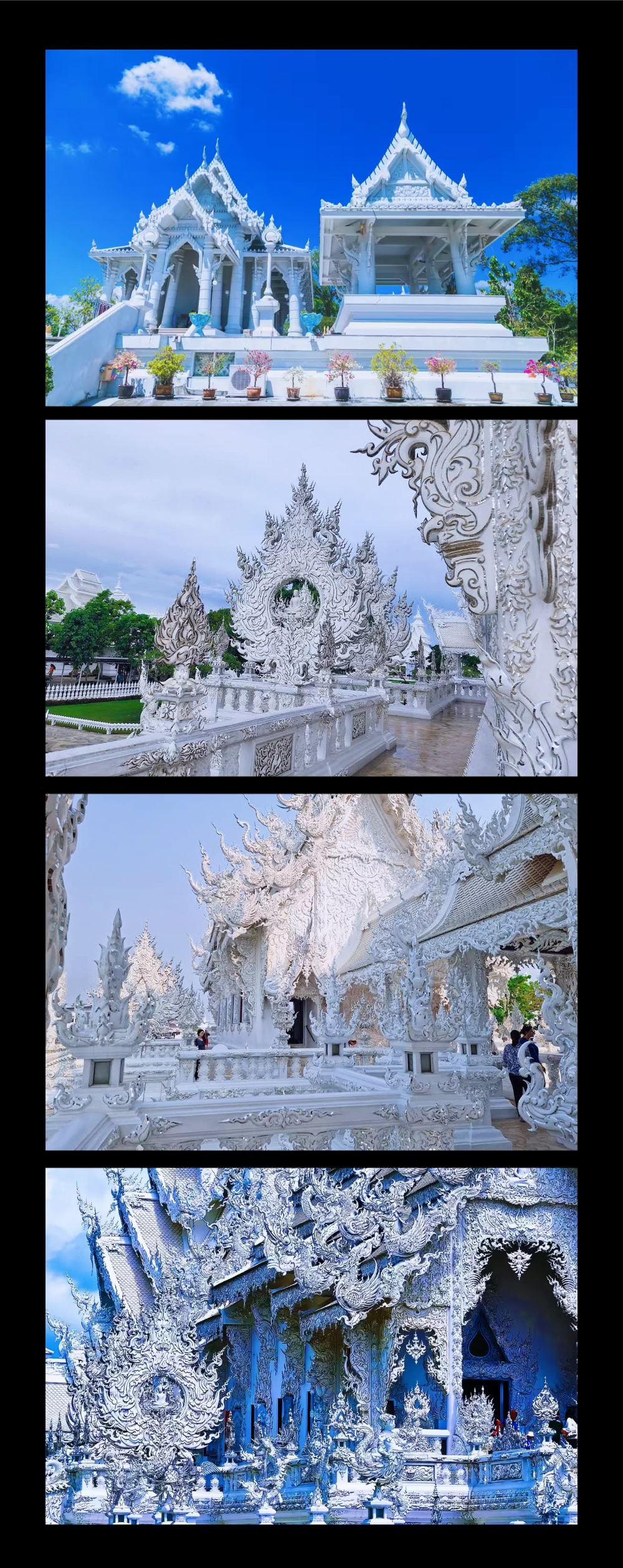 [วัดร่องขุ่น]วัดร่องขุ่นมีชื่อเดิมว่าวัดพญานาค หรือเรียกว่าวัดหลงคุน วัดหลิงกวง และวัดวาหลงคุน เมื่อมองจากระยะไกล วัดแห่งนี้ดูเหมือนสร้างด้วยเครื่องปั้นดินเผาที่เป็นประกาย แต่เมื่อเข้าไปใกล้จะพบว่าภาพลวงตานี้เกิดจากสีขาวและเกล็ดแก้วที่สะท้อนแสง