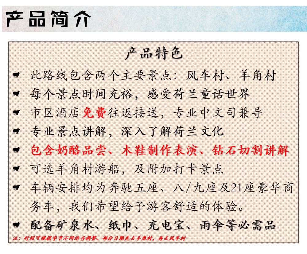 บริการรับส่งฟรีด้วยรถส่วนตัวจากโรงแรมในอัมสเตอร์ดัม; ทัวร์กลุ่มเล็กพิเศษ 8 คน; แนะนำอาหารกลางวันแบบดัตช์แท้ เลือกได้ตามใจชอบ