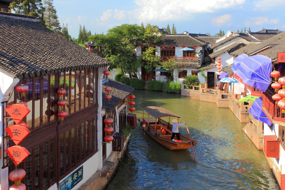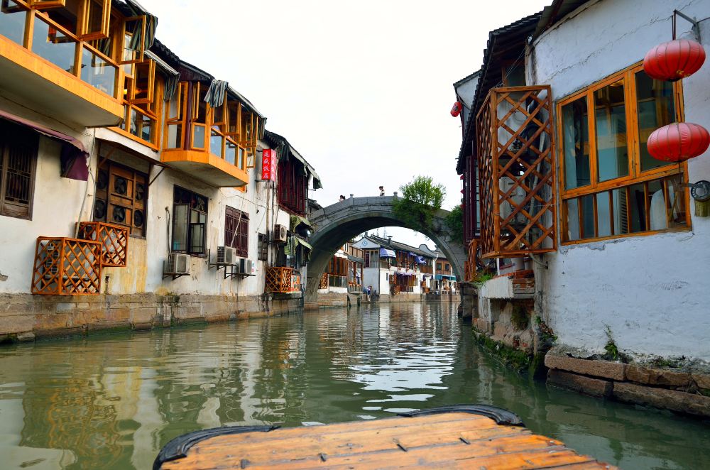 เมืองน้ำจูเจียเจียวอยู่ห่างจากเซี่ยงไฮ้สี่สิบเจ็ดกิโลเมตร มันเป็นเมืองน้ำโบราณทั่วไปในเขตชิงผู่ ทางตอนใต้ของแม่น้ำแยงซี ซึ่งมีประวัติศาสตร์ยาวนานเกือบ 1,700 ปี มีทางน้ำที่สวยงาม สะพานหินโค้ง ถนนเก่าที่ปูด้วยหิน และอาคารมากกว่า 10,000 หลังสมัยราชวงศ์หมิง (ค.ศ. 1368-1644) และราชวงศ์ชิง (ค.ศ. 1644-1911) เมื่อเดินบนทางเดินหินซิกแซ็กและเส้นทางคดเคี้ยวยาวๆ คุณจะรู้สึกเหมือนกำลังเดินอยู่ในภาพวาดที่หรูหราและสดใหม่ แม่น้ำสายเล็กๆ ใต้ร่มเงาของต้นวิลโลว์ สะพานข้ามแม่น้ำ บ้านเรือนในสมัยราชวงศ์หมิงและชิง ผู้คนในท้องถิ่นที่ไม่ซับซ้อน ทั้งหมดนี้ล้วนเป็นเสน่ห์ของเมืองเล็กๆ นี้ คุณมีโอกาสที่จะนั่งเรือเที่ยวชมเมืองอย่างใกล้ชิดและค้นพบสิ่งที่น่าสนใจยิ่งขึ้น