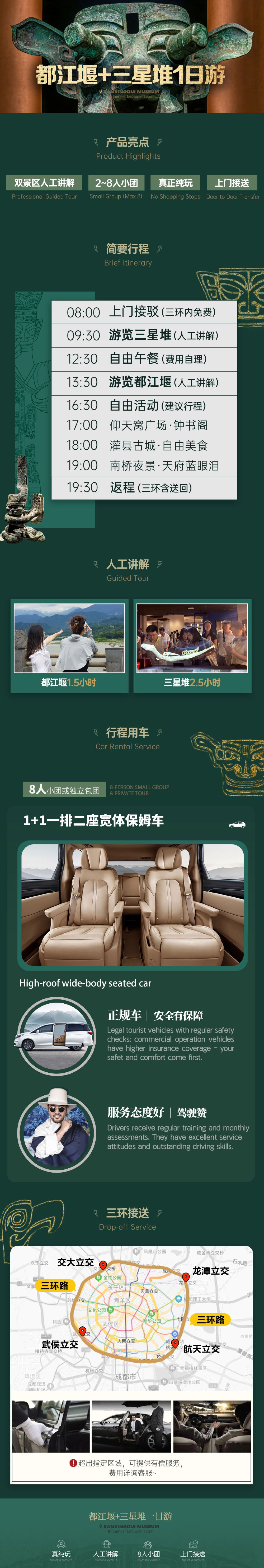 ทัวร์ส่วนตัว 1 วัน เฉิงตู ตูเจียงเยี่ยน + พิพิธภัณฑ์ซานซิงตุย [รถรับส่งส่วนตัว พร้อมไกด์หลายภาษาให้เลือก]