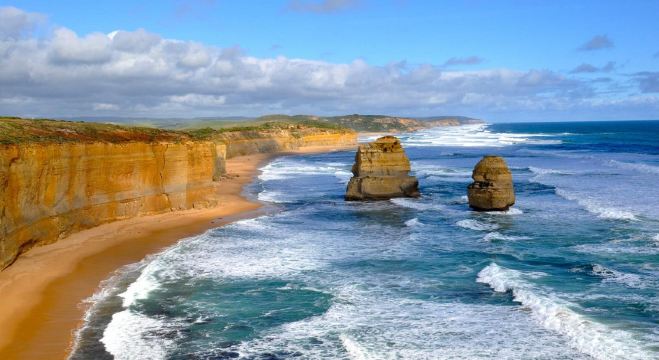 15:00 เดินทางไปยังจุดชมวิวที่มีชื่อเสียงที่สุด Twelve Apostles คุณสามารถเลือกที่จะขึ้นเฮลิคอปเตอร์โดยออกค่าใช้จ่ายเอง: $168 (อยู่ประมาณ 60 นาที)