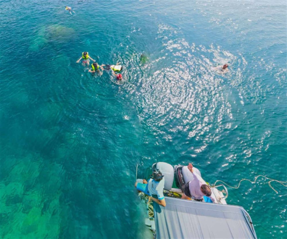 รวม: อาหารเย็นบาร์บีคิวบนเกาะ, น้ำดื่ม 1 ขวด, ไกด์นำเที่ยว ภาษาอังกฤษ, รถรับส่งไปกลับ, เรือ ไปกลับ ริป, อุปกรณ์ดำน้ำตื้น (หน้ากาก, ท่อหายใจ, ตีนกบ (ไม่มีไซส์เด็ก), เสื้อชูชีพ ), วิดีโอ 1 วิดีโอ + ภาพถ่ายหมู่ทางอากาศ 3 ภาพ (เฉพาะ แพ็กเกจ สปีดโบ๊ต )