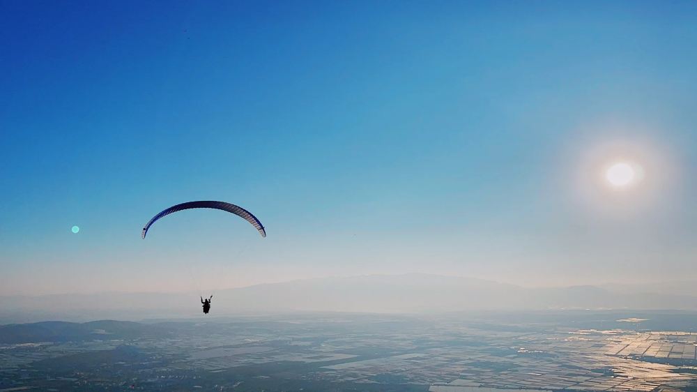 บินด้วยเครื่องร่อนสามเหลี่ยม ท่ามกลางท้องฟ้าสีครามและเมฆขาว ชมทิวทัศน์อันสวยงามจากมุมสูง รู้สึกถึงความเร็วของลม และสัมผัสกับความตื่นเต้นและความสุขของการบิน!