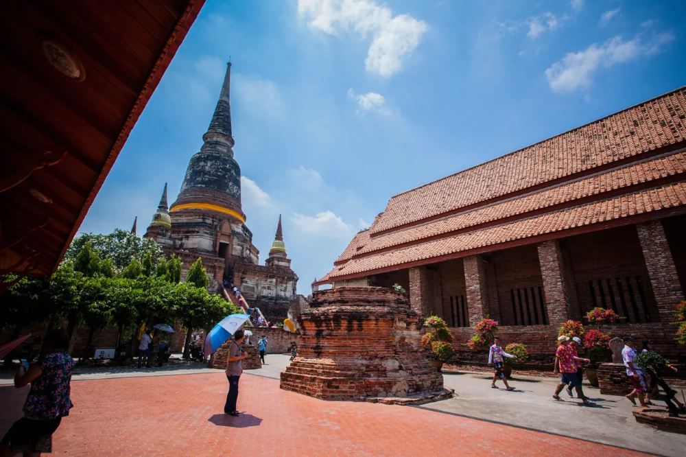 ▲ วัดไชยมงคลมีจุดเด่นคือเจดีย์สูงตระหง่านและพระพุทธรูปปางไสยาสน์ขนาดใหญ่ นักท่องเที่ยวสามารถขึ้นไปบนเจดีย์เพื่อชมวิวทั้งวัดหรือมองออกไปยังทิวทัศน์ที่อยู่ไกลออกไป