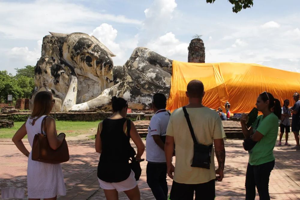 ▲ พระพุทธไสยาสน์ภายในวัดเป็นพื้นที่โบราณสถานกลางแจ้งที่มีขนาดใหญ่ที่สุด และยังเป็นสถานที่ท่องเที่ยวที่ไม่เสียค่าเข้าชมในเขตโบราณสถานพระนครศรีอยุธยา ซึ่งถือว่ามีความสำคัญและควรค่าแก่การมาเคารพสักการะ