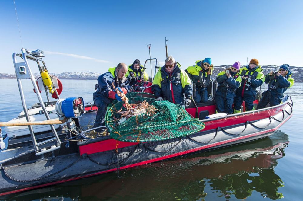 ชาวประมง/ไกด์นำเที่ยวของเราจะไปรับท่านที่โรงแรม จากนั้นจะพาท่านไปยังท่าเรือปูยักษ์ในเคียร์เคเนส ที่นี่ ไกด์นำเที่ยวของท่านจะช่วยท่านแต่งตัวและให้คำแนะนำด้านความปลอดภัย ก่อนที่ท่านจะออกเรือ การเดินทางจะหยุดที่เรือประมงในเคียร์เคเนส ซึ่งท่านจะได้เรียนรู้เกี่ยวกับการจับปูยักษ์ รวมถึงความรู้ด้านการประมงและการเดินเรืออื่นๆ จากนั้นเราจะออกเดินทางไปเยี่ยมชมสนามรบในสงครามโลกครั้งที่สองภายในฟยอร์ด โดยไกด์นำเที่ยวของเราจะเล่าเรื่องราวที่น่าสนใจเกี่ยวกับสงครามโลกให้ท่านฟัง หลังจากนั้นเราจะไปเก็บกรงปู แล้วไปฆ่าปูที่ "อีกฝั่งหนึ่ง" "อีกฝั่งหนึ่ง" คือร้านอาหารกระท่อมเรือชนบทของเราที่ตั้งอยู่ตรงข้ามฟยอร์ดเคียร์เคเนส หลังจากถ่ายรูปที่ต้องถ่ายกับปลาตัวใหญ่ที่ท่านจับได้แล้ว เราจะเสิร์ฟกาแฟ/ชาให้ท่านในขณะที่นึ่งปู ขาปูจะเสิร์ฟในสไตล์นอร์เวย์เหนือ พร้อมขนมปัง เนย มายองเนส และมะนาว ผู้เชี่ยวชาญของเราจะสอนวิธีแกะขาปูเหมือนราชาหรือราชินี ท่านสามารถสั่งเครื่องดื่ม เช่น ไวน์ เบียร์ หรือน้ำแร่ได้ที่โต๊ะ หลังอาหาร เราจะเดินทางข้ามฟยอร์ดกลับไปยังเคียร์เคเนส จากนั้นจะส่งท่านกลับโรงแรม(นี่คือบริการรับส่งโรงแรมแบบตายตัว ไม่สามารถเลือกโรงแรมใกล้เคียงเพื่อขึ้นรถหรือเดินทางไปยังจุดนัดพบด้วยตนเองได้)