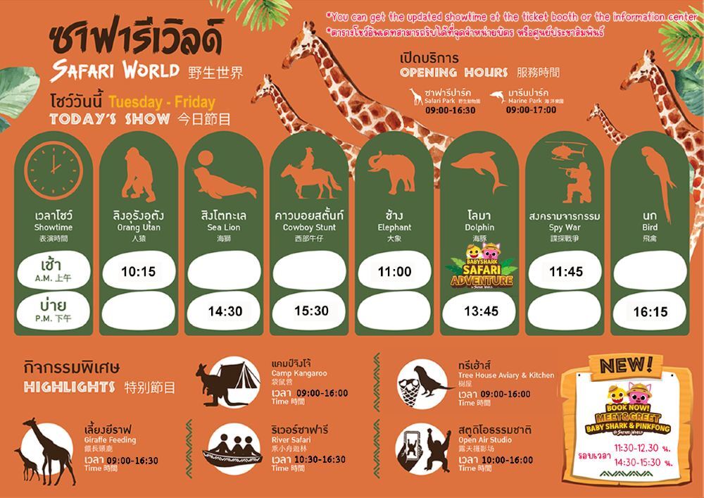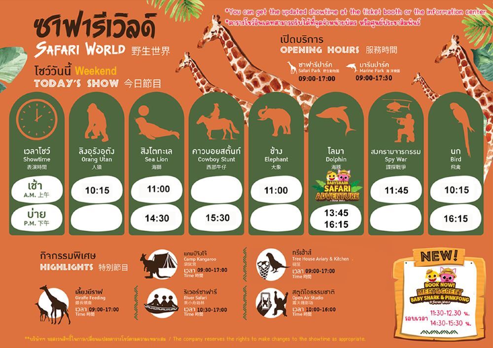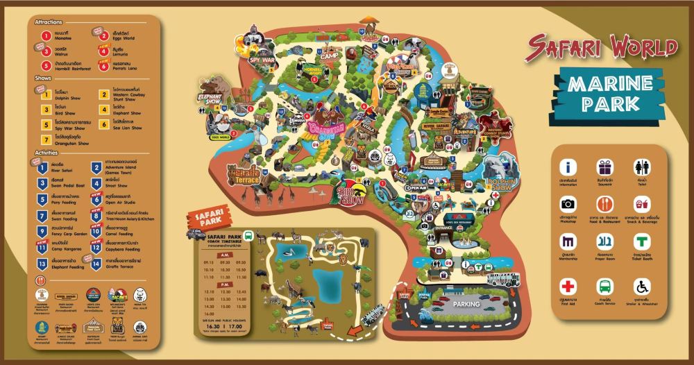 ตารางเวลาโชว์และแผนที่ของซาฟารีเวิลด์ จะช่วยให้ผู้เข้าชมสามารถเดินทางไปยังพื้นที่ต่างๆได้อย่างสะดวกและมีประสิทธิภาพ