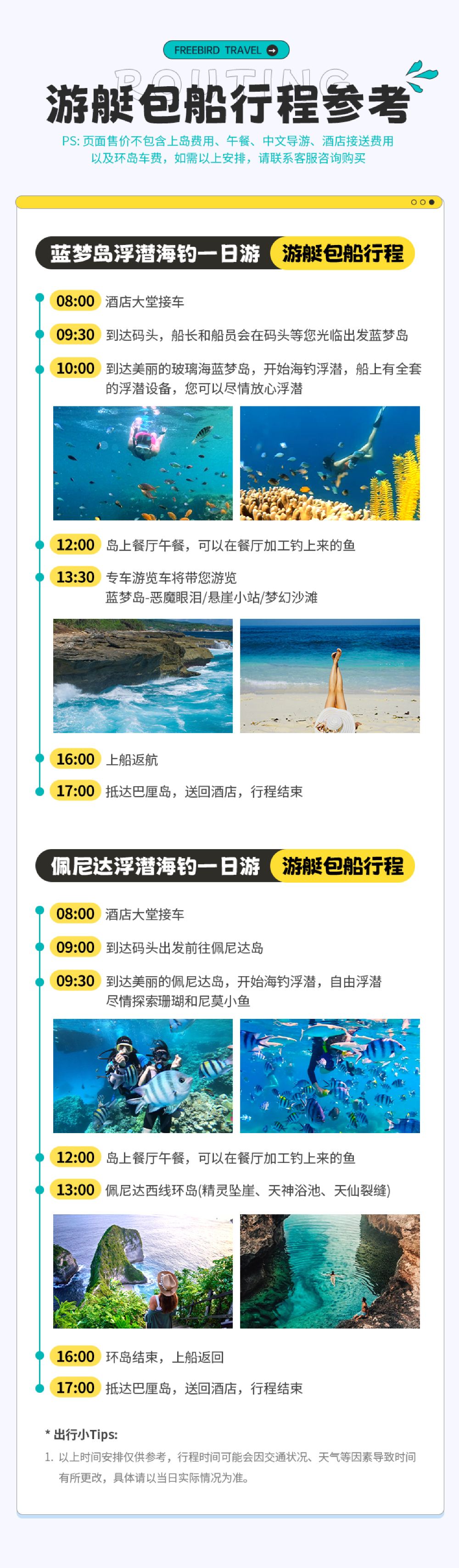 [เส้นทางเลือกได้] จุดท่องเที่ยวในเขตทะเลเกาะนูซาเปอนิดาและเกาะเลมบองกานแตกต่างกัน สามารถติดต่อฝ่ายบริการลูกค้าเพื่อยืนยันล่วงหน้าได้