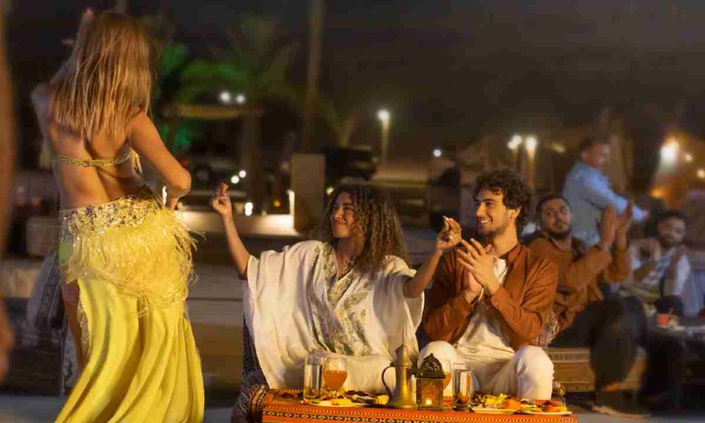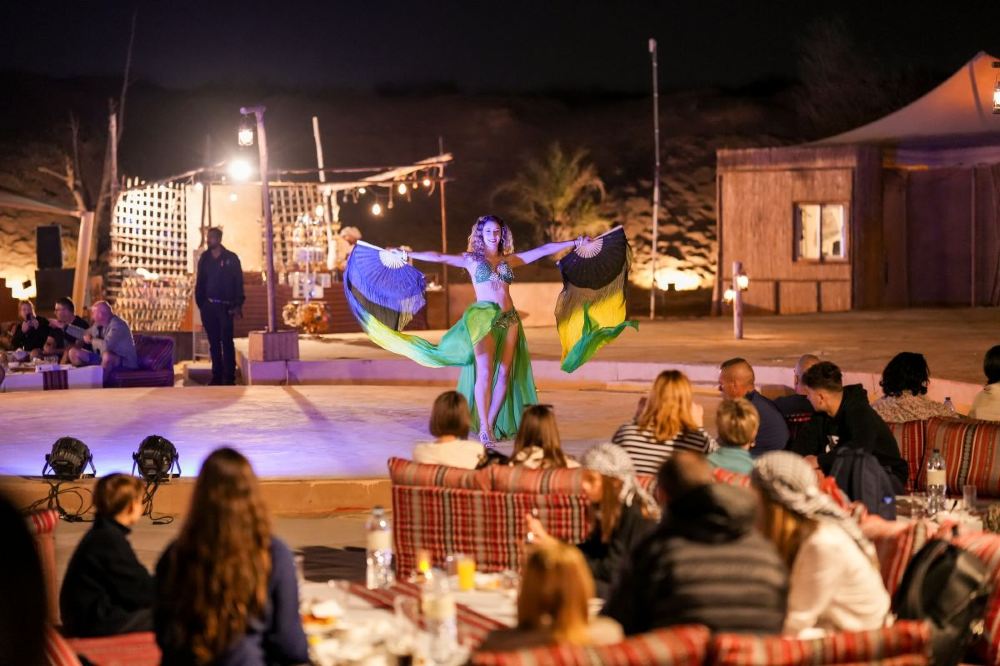 ▲ ขณะที่ได้ลิ้มรสอาหารสุดหรู คุณยังสามารถเพลิดเพลินกับการแสดงยามค่ำคืนแบบดั้งเดิมที่เต็มไปด้วยสีสันหลากหลาย ซึ่งจะเพิ่มความทรงจำอันน่าประทับใจให้กับการเดินทางในทะเลทรายของคุณ