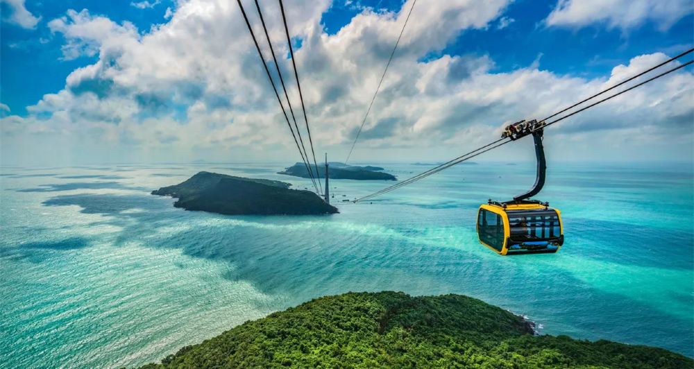 นั่ง กระเช้าลอยฟ้า กระเช้าลอยฟ้า ข้ามทะเลไปชมวิวทิวทัศน์ทะเลนาน 25 นาที