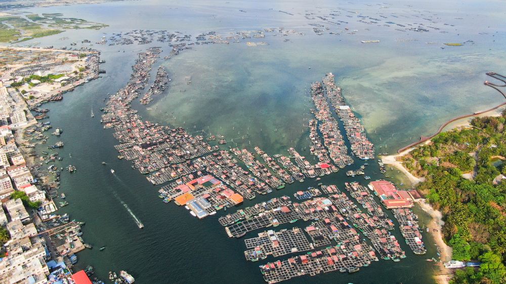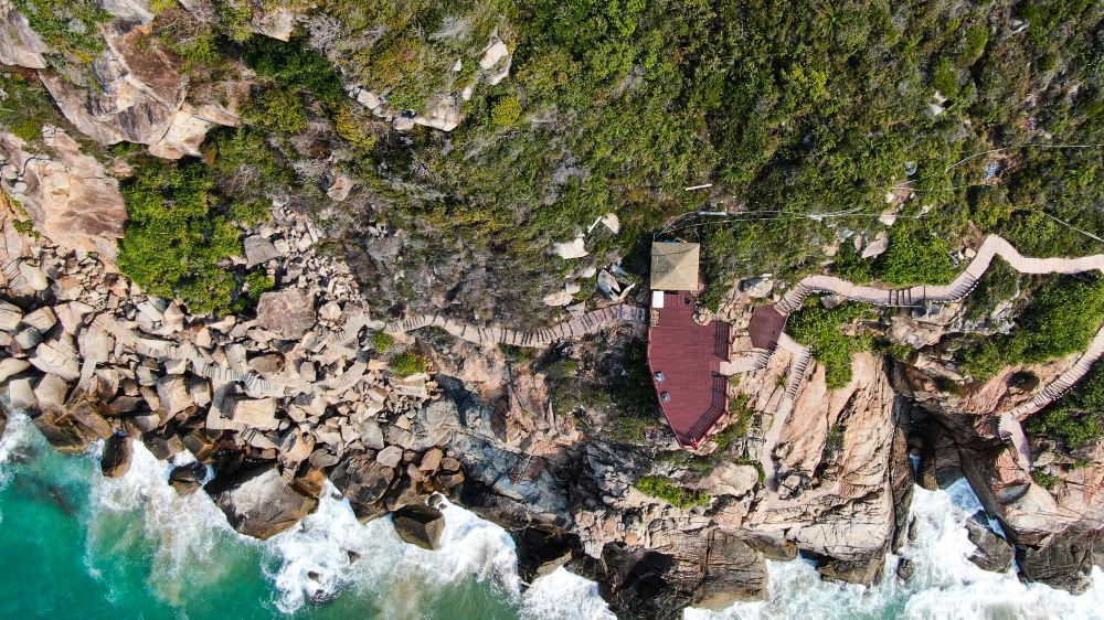 เดินทางถึงเกาะลิง นั่งกระเช้าลอยฟ้าขึ้นเกาะ สามารถชมทิวทัศน์จากมุมสูง เช่น แพปลาชาวน้ำและคาบสมุทรหนานวาน