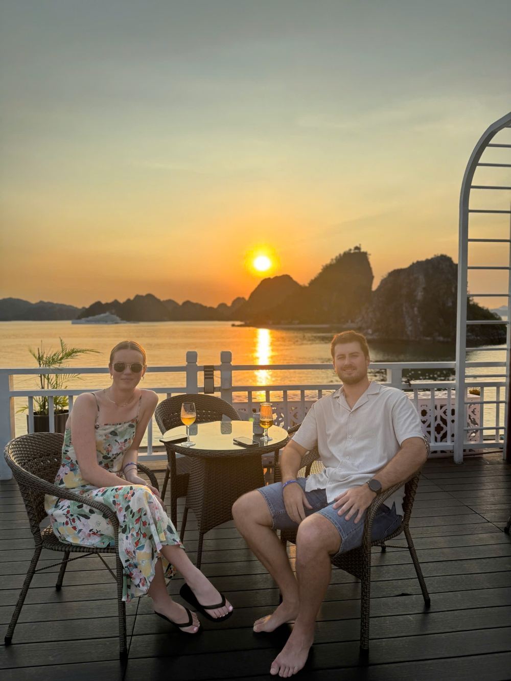 ▲ ดาดฟ้าอาบแดดบนเรือ Arcady Boutique Cruise เป็นพื้นที่เปิดโล่งกว้างขวางที่เหมาะสำหรับการเที่ยวชมทิวทัศน์ อาบแดด หรือเพียงแค่พักผ่อนพร้อมจิบเครื่องดื่ม ด้วยทัศนียภาพอันงดงามของอ่าวหะล็อง จึงเป็นจุดที่เหมาะสำหรับการดื่มด่ำกับทิวทัศน์และถ่ายภาพที่สวยงาม