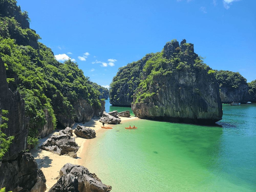 ▲ การพายเรือคายัคในอ่าวหะล็องเป็นวิธีผจญภัยเพื่อสำรวจผืนน้ำสีมรกตอันเงียบสงบและหน้าผาหินปูนสูงตระหง่าน ผู้เดินทางสามารถพายเรือผ่านลากูนที่ซ่อนอยู่ ถ้ำ และชายหาดอันเงียบสงบ เพื่อสัมผัสใกล้ชิดกับแนวนอนอันน่าทึ่งของอ่าว และเพลิดเพลินกับมุมมองที่ไม่เหมือนใครและใกล้ชิดของแหล่งมรดกโลกของ UNESCO แห่งนี้