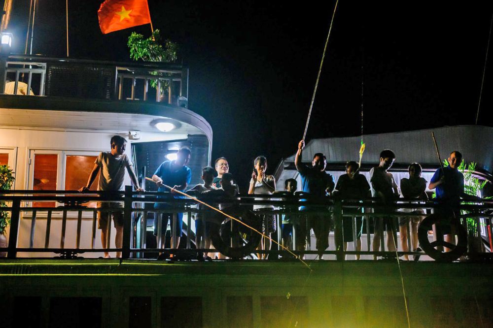 ▲ การตกหมึกบนเรือ Arcady Boutique Cruise เป็นกิจกรรมยามค่ำคืนที่สนุกสนาน ซึ่งผู้เดินทางจะได้ลองเสี่ยงโชคตกหมึกใต้ท้องฟ้าที่เต็มไปด้วยดวงดาว ด้วยการใช้เบ็ดตกปลาและไฟแบบดั้งเดิม กิจกรรมนี้มอบประสบการณ์ที่ผ่อนคลายและน่าจดจำเพื่อเพลิดเพลินกับความงามอันเงียบสงบของอ่าวหลังพระอาทิตย์ตกดิน