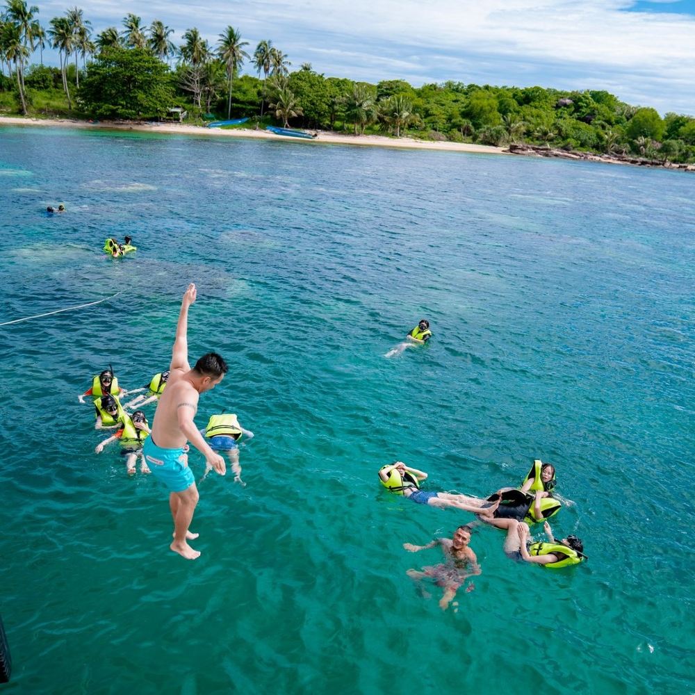 ดำน้ำตื้น/ว่ายน้ำ/กระโดดน้ำ/อาบแดดบนเรือที่เกาะมงเตย์ (Mong Tay Island)