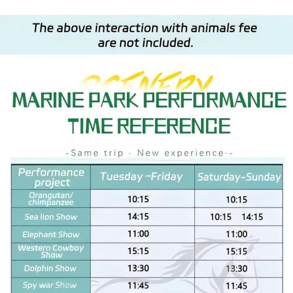 เวลา 9:30 น.: สามารถไปยังเขตมารีนปาร์คก่อน เพื่อชมโชว์สัตว์