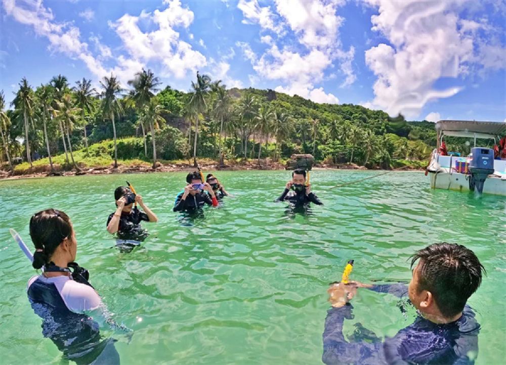 - 9:10 น.:เดินทางไปยังจุดดำน้ำตื้นที่ปะการังฟูก๊วก (1.5-2 ชั่วโมง มีเวลาพักระหว่างดำน้ำ 2 ครั้ง เพื่อสำรวจทั้งสองด้านของแนวปะการัง)