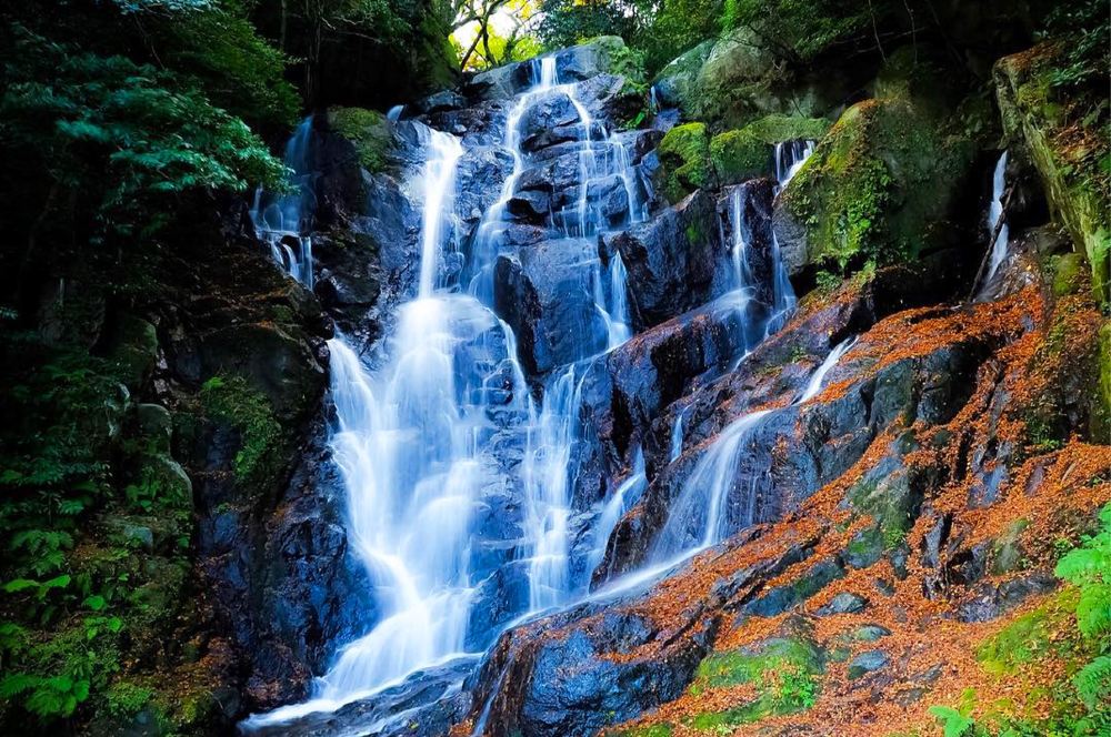 ▲ น้ำตกสายสีขาว (Shiraito Falls) ตั้งอยู่ที่ความสูง 900 เมตรจากระดับน้ำทะเล บริเวณกลางภูเขา Hane ถูกกำหนดให้เป็นสถานที่ท่องเที่ยวที่มีชื่อเสียงของจังหวัดฟุกุโอกะ น้ำตกแห่งนี้มีความสูงประมาณ 24 เมตร ซึ่งเป็นที่มาของชื่อ "สายสีขาว" ที่น้ำไหลลงมาเหมือนเส้นไหมสีขาวบางๆ ในช่วงฤดูร้อน ละอองน้ำที่กระเซ็นกระจายสร้างความรู้สึกสดชื่นและผ่อนคลาย เป็นสถานที่พักผ่อนที่เต็มไปด้วยไอออนลบและธรรมชาติอันบริสุทธิ์ ซึ่งเป็นจุดท่องเที่ยวที่มีชื่อเสียงมากแห่งหนึ่งในญี่ปุ่น