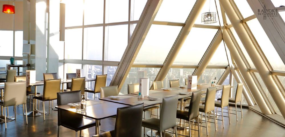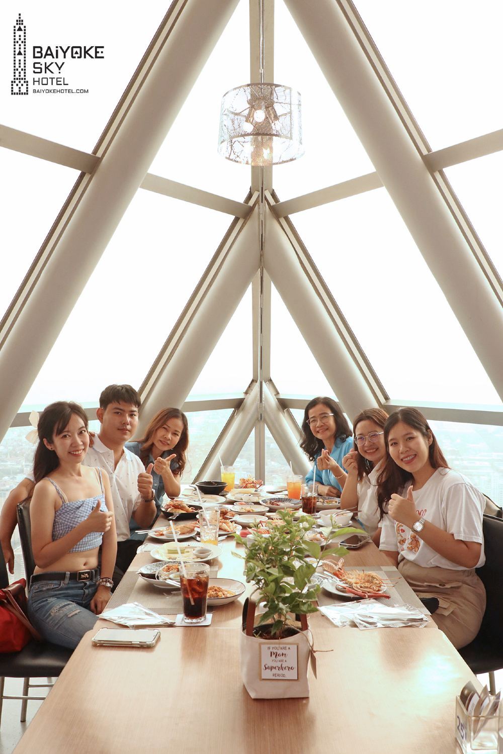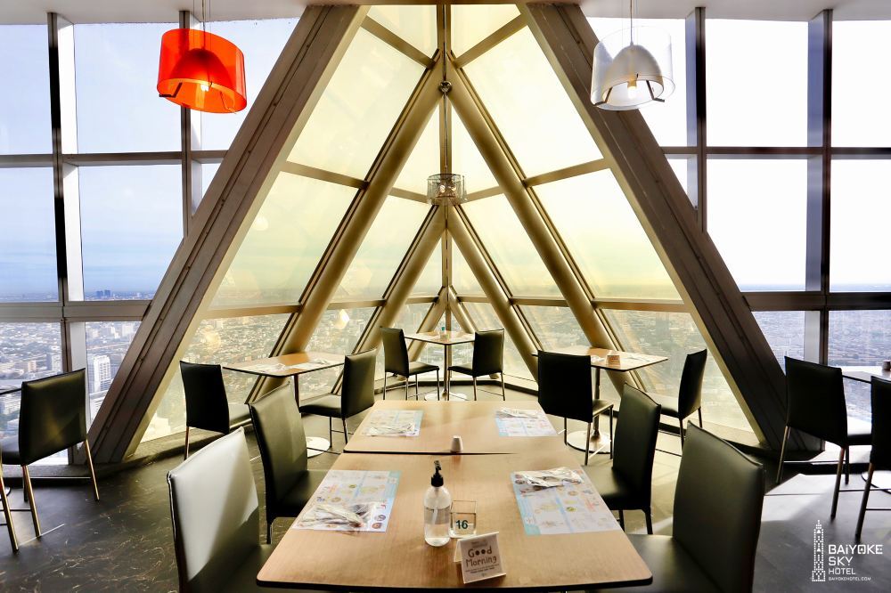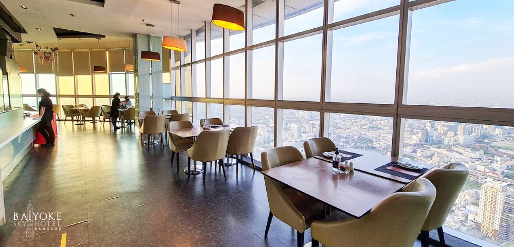 การตกแต่งบนชั้น 81 เน้นสไตล์โมเดิร์นและสดใส มีเมนูบุฟเฟ่ต์อาหารทะเลนานาชาติให้เลือกเกือบ 150 รายการ สเต็กและเนื้อแกะนำเข้าจากออสเตรเลียและประเทศอื่นๆ เพลิดเพลินกับ อาหารและเครื่องดื่ม และทิวทัศน์ที่สวยงามจากมุมสูงได้อย่างสะดวกสบาย!