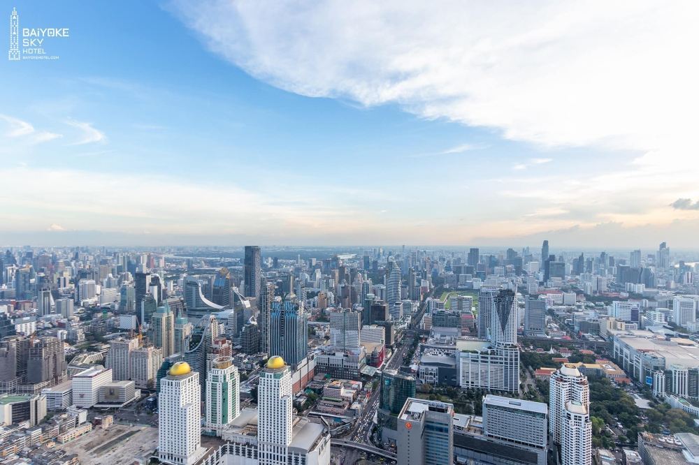 โรงแรมใบหยกสกายถือเป็นแลนด์มาร์คสำคัญใจกลางกรุงเทพฯ ใกล้กับห้างสรรพสินค้าเซ็นทรัล สยามสแควร์ พารากอน และห้างสรรพสินค้าขนาดใหญ่อื่นๆ โดยมีความสูงรวม 309 เมตร และมีทั้งหมด 84 ชั้น จินตนาการถึงการกิน อาหารและเครื่องดื่ม ได้เลย ขณะชื่นชมทิวทัศน์ของกรุงเทพฯ คุณก็จะได้ชมทัศนียภาพอันงดงามของเมืองทั้งเมืองได้แบบพาโนรามา~
