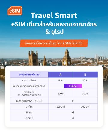 • การใช้งาน eSIM นอกสหราชอาณาจักร โปรดเปิดฟังก์ชันโรมมิ่งข้อมูล