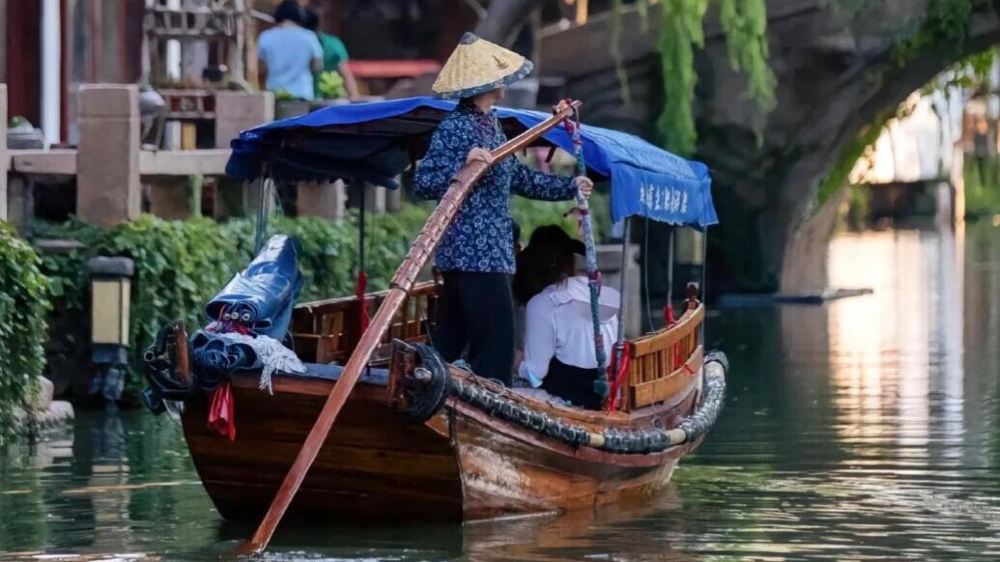 (2) 10:00-16:30 ไกด์ทัวร์จะพาคุณเที่ยวชมหมู่บ้านโบราณโจวจวง (รวมทัวร์ล่องเรือชมวิวแม่น้ำ)