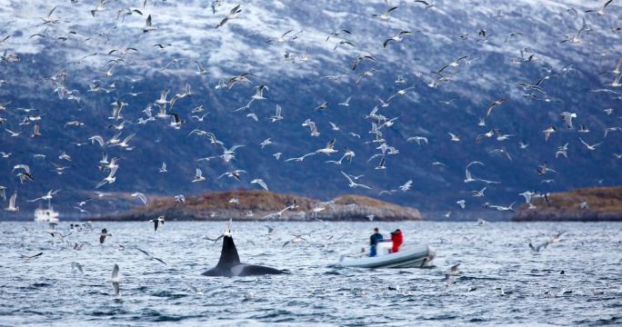 รายการอ้างอิง: นอกจากโอกาสที่จะได้เห็นวาฬแล้ว นี่ยังเป็นวิธีที่ดีในการสัมผัสกับทิวทัศน์ที่สวยงามและดุร้ายของขั้วโลกเหนือ คุณอาจได้เห็นนกนักล่าที่สง่างาม เช่น นกอินทรีหางขาว เราปฏิบัติตามแนวทางที่กำหนดไว้ทั้งหมด เคารพวาฬและสิ่งแวดล้อม ลูกเรือของเราปฏิบัติตนอย่างปลอดภัยและเคารพเสมอ บางครั้งวาฬอาจเข้ามาใกล้ บางครั้งพวกมันอาจอยู่ห่างออกไป แต่เราจะปฏิบัติตามกฎของธรรมชาติเสมอ แม้ว่าเราไม่สามารถรับประกันว่าจะได้เห็นวาฬ (เพราะพวกมันเป็นสัตว์ป่า) แต่ลูกเรือและไกด์ที่มีประสบการณ์ของเราจะพยายามอย่างเต็มที่เพื่อค้นหาพวกมันในพื้นที่ที่พวกมันปรากฏตัวครั้งล่าสุด โปรดทราบว่าสภาพอากาศที่เปลี่ยนแปลงได้และบางครั้งรุนแรงของขั้วโลกเหนืออาจส่งผลต่อการพบเห็นวาฬ เวลาในการเดินทางไปยังพื้นที่ที่วาฬมักปรากฏตัวอาจแตกต่างกัน และสภาพทะเลบางครั้งอาจรุนแรง โดยเฉพาะในฟยอร์ดลินเกนและฟยอร์ดอุลส์ สภาพน้ำขึ้นน้ำลงในทรุมเซอบางครั้งอาจทำให้การขึ้นและลงเรือทำได้ยาก
