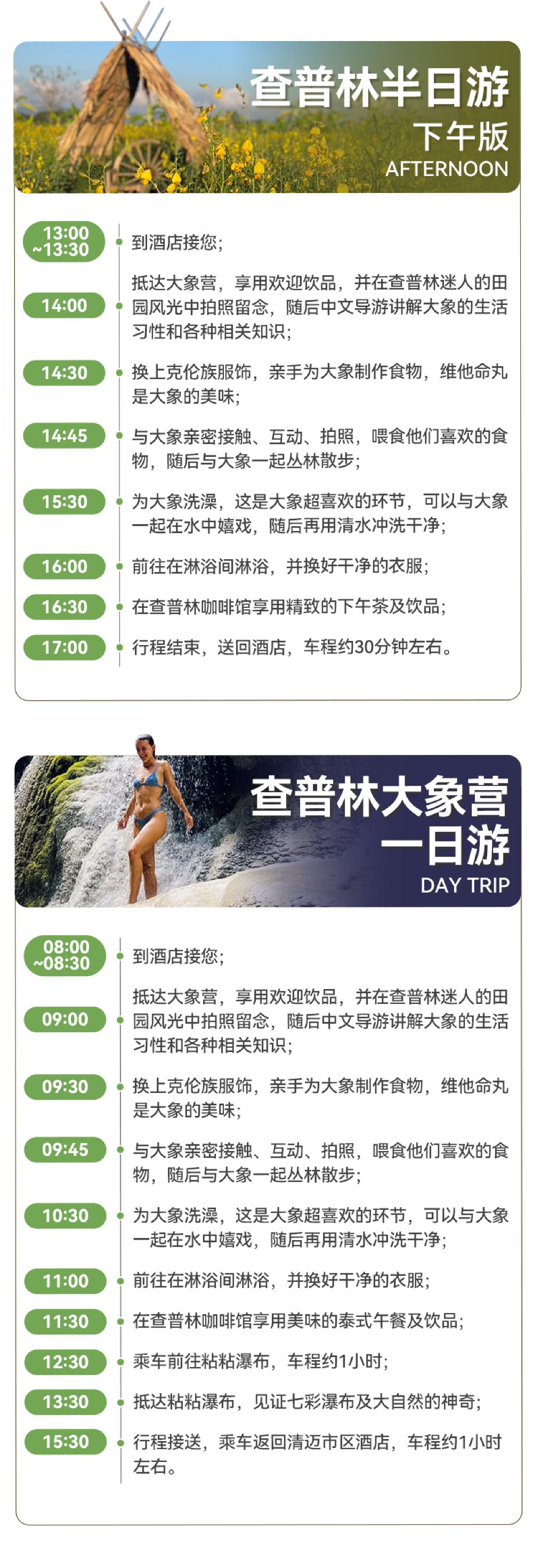 บริการภาษาจีนตลอด 24 ชั่วโมง บริการรับส่งที่พักในพื้นที่ ไกด์นำเที่ยวภาษาจีน อาหารกลางวันไทยอร่อยหรืออาหารว่างยามบ่าย (ขึ้นอยู่กับแพ็กเกจที่เลือก)
