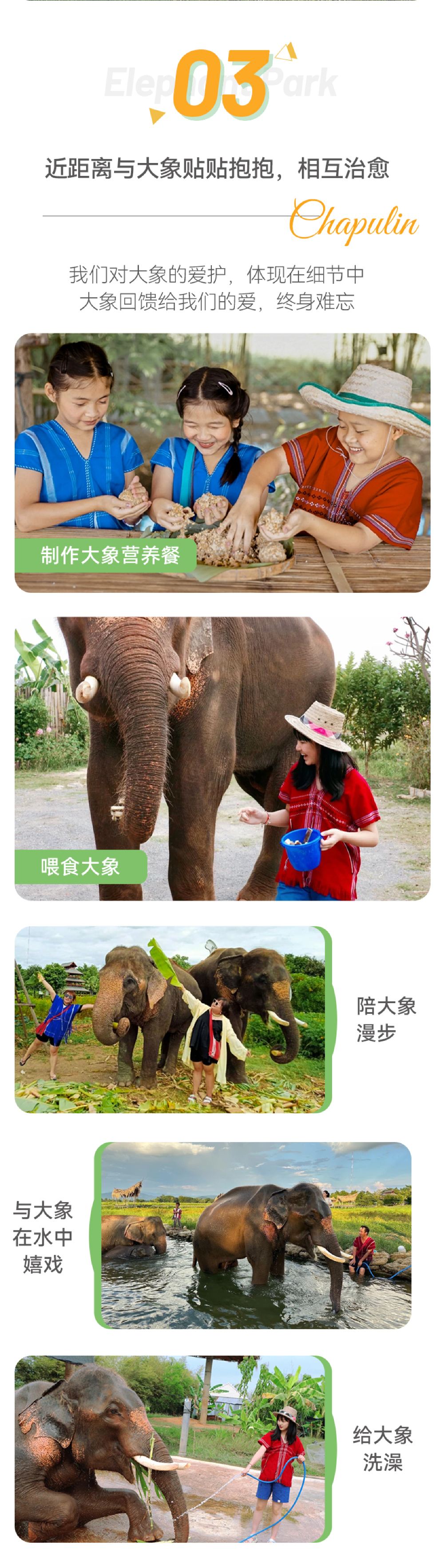 ทำอาหารเสริมโภชนาการให้ช้าง ป้อนอาหารช้าง เล่นกับช้าง และเล่นน้ำกับช้าง
