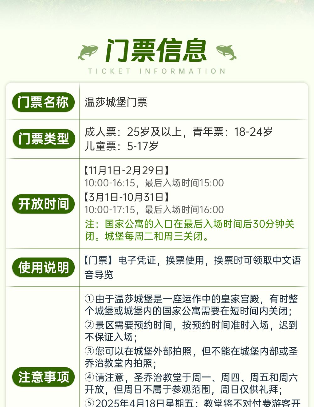 1, รวมค่าใช้จ่าย: ค่าตั๋วเข้าทั่วไปพระราชวังวินด์เซอร์ + ค่าบริการการจอง 30%-40%