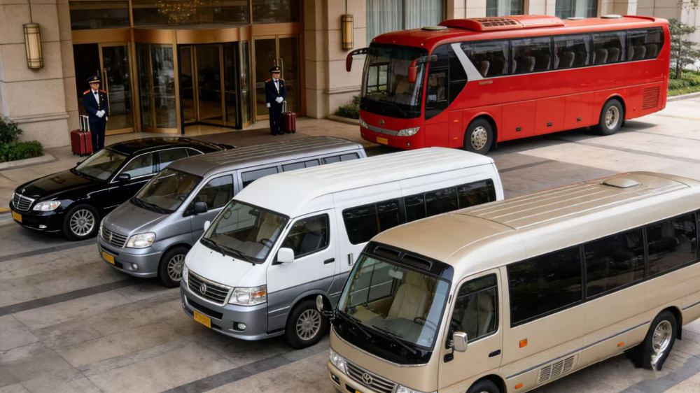 สำหรับการเดินทาง เรามีรถให้เลือกตั้งแต่รุ่น 5 ที่นั่งถึง 55 ที่นั่ง และจะจัดรถที่เหมาะสมตามจำนวนคนที่คุณจอง คนขับทุกคนมีอุปกรณ์แปลภาษาหลายภาษา และเรายังเตรียมขนมและน้ำแร่เพื่อให้การเดินทางของคุณสะดวกสบายยิ่งขึ้น นอกจากนี้หากคุณต้องการความช่วยเหลือในการจองตั๋ว คนขับก็ยินดีช่วยเหลือ